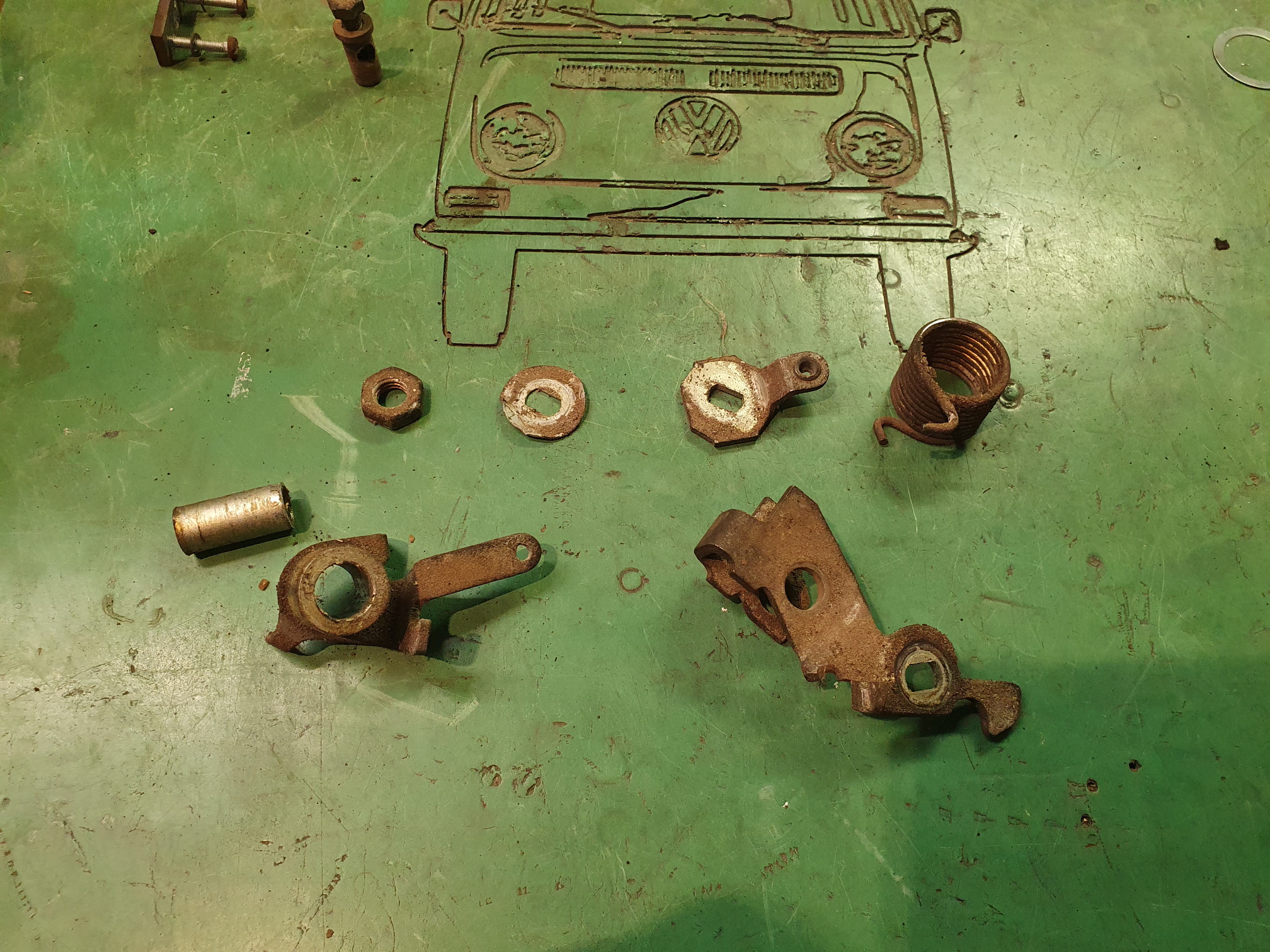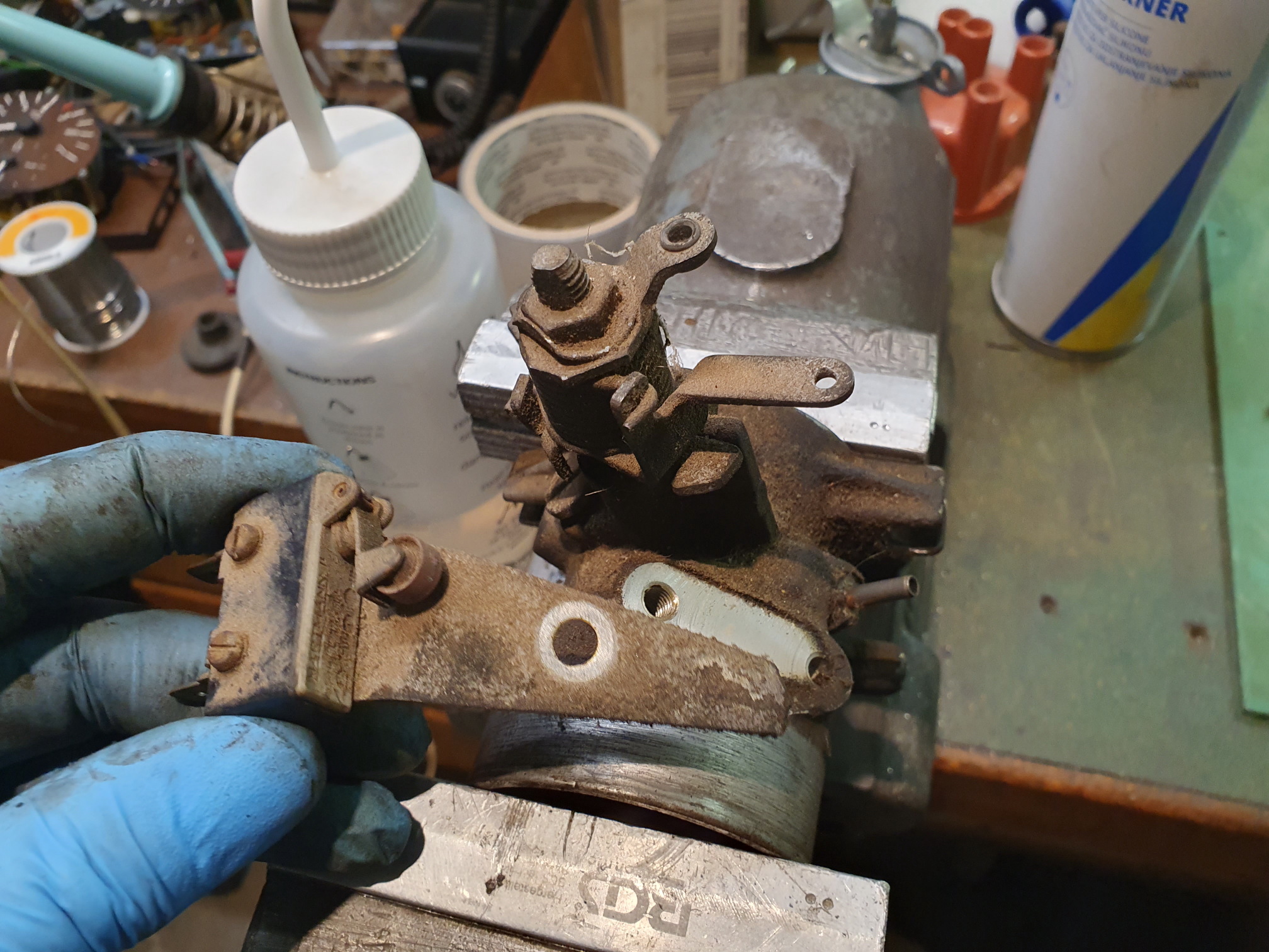 Hier die Sammlung von Einzelteilen: Nun kann man die beiden Schraubenvon der eigentlichen Drosselklappe lösen. Anfangs ggf. noch mal ein Stück wieder rein schrauben.