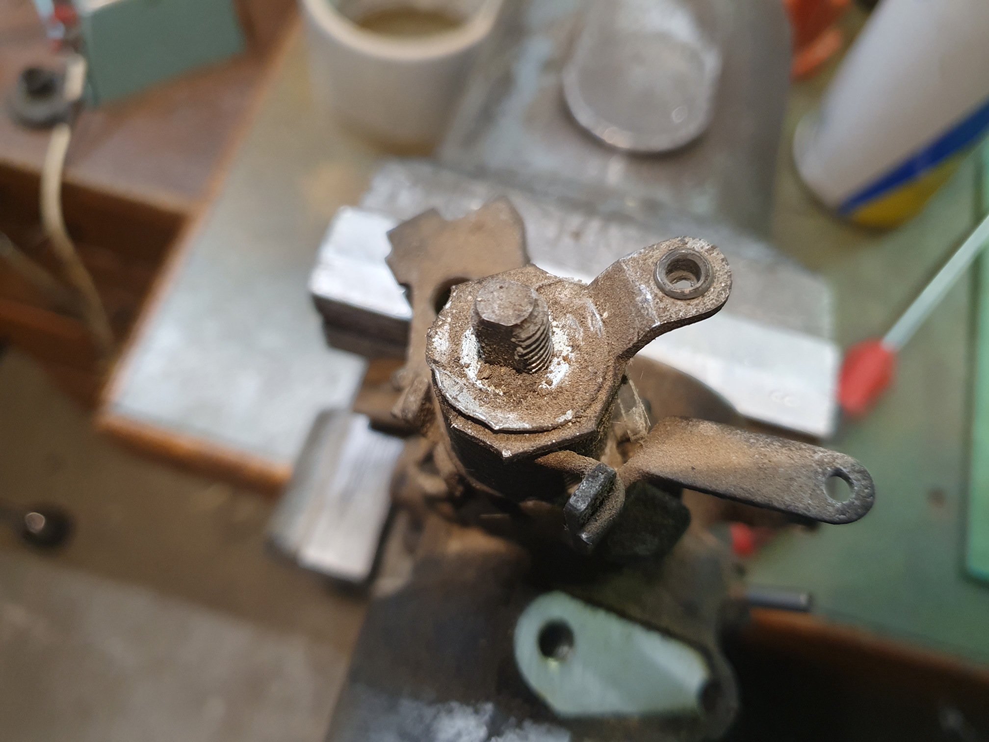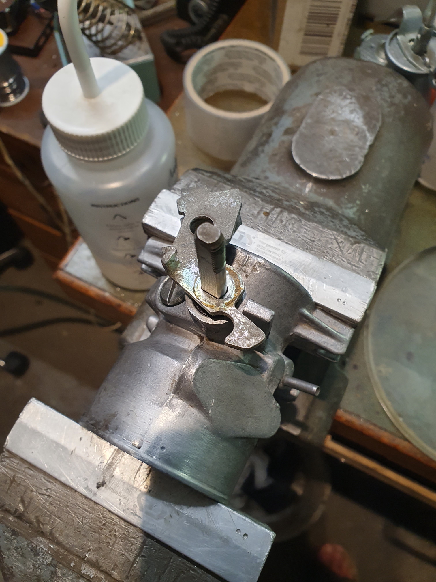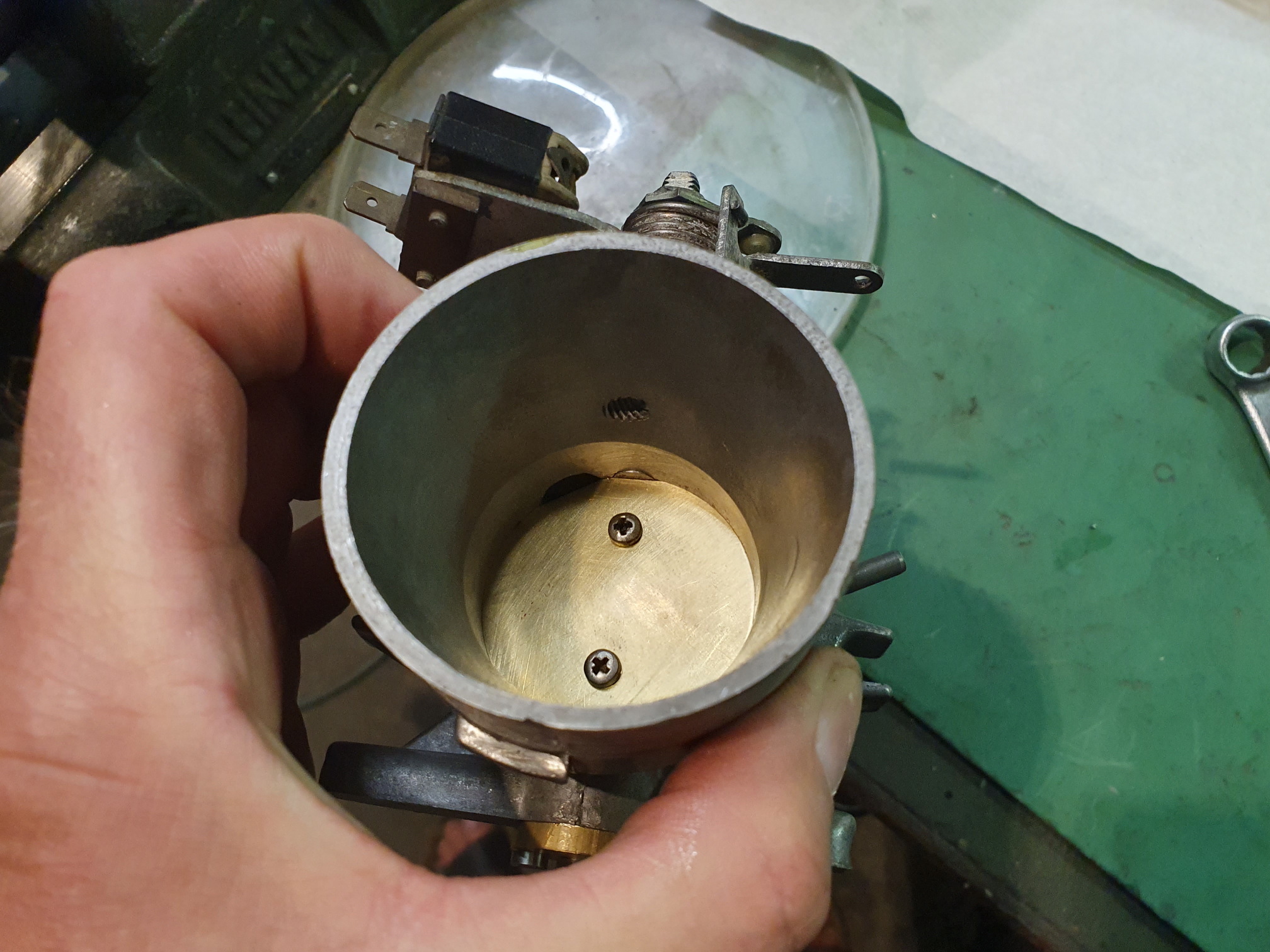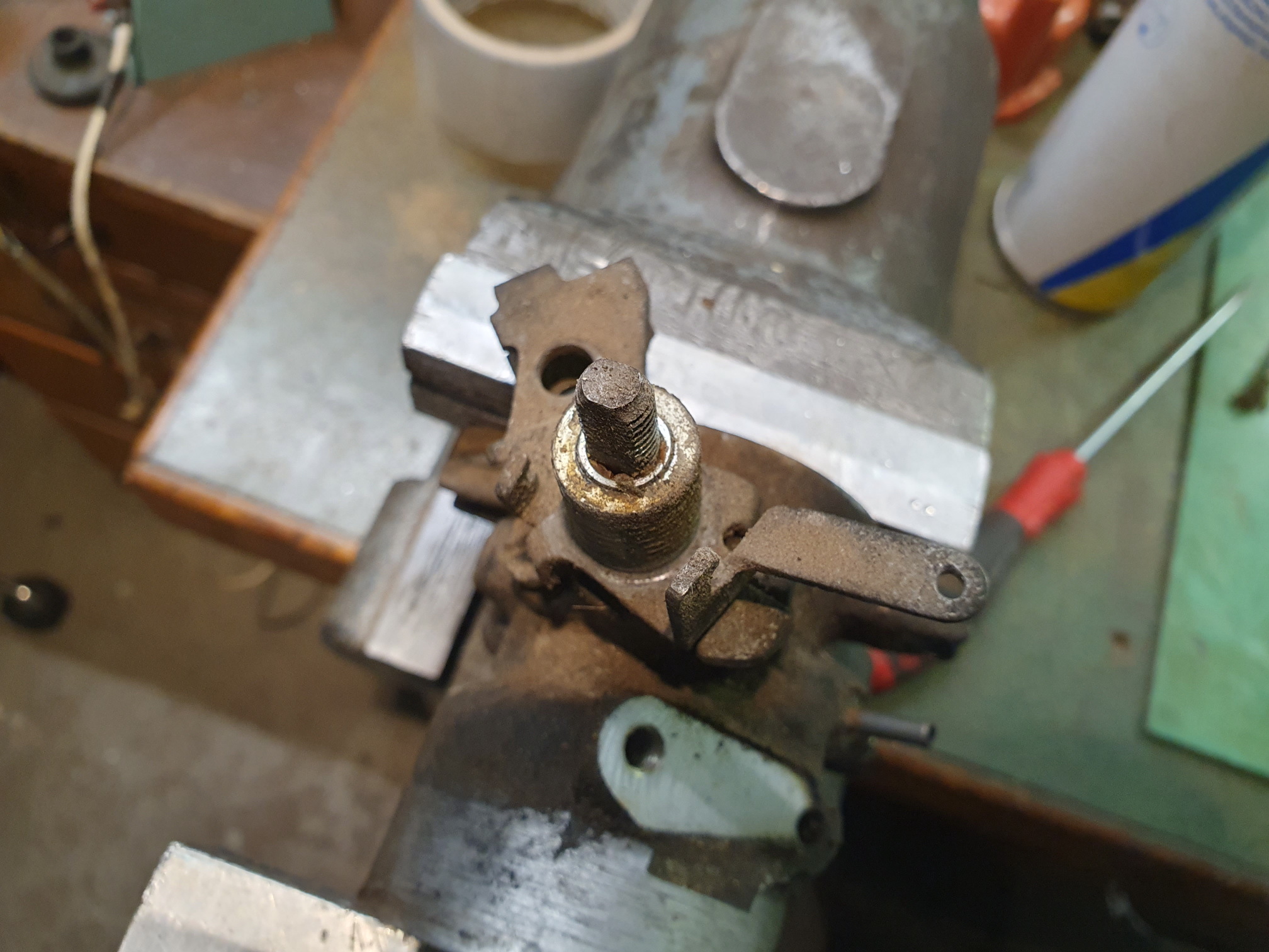 Dann die Öffnung schon mal mit Fett füllen und den Deckel wieder rein Drücken. Nun kommt die Einstellbare Stütze da dran. Damit kann man dann Später den unteren Anschlag für die Drosselklappe einstellen.
