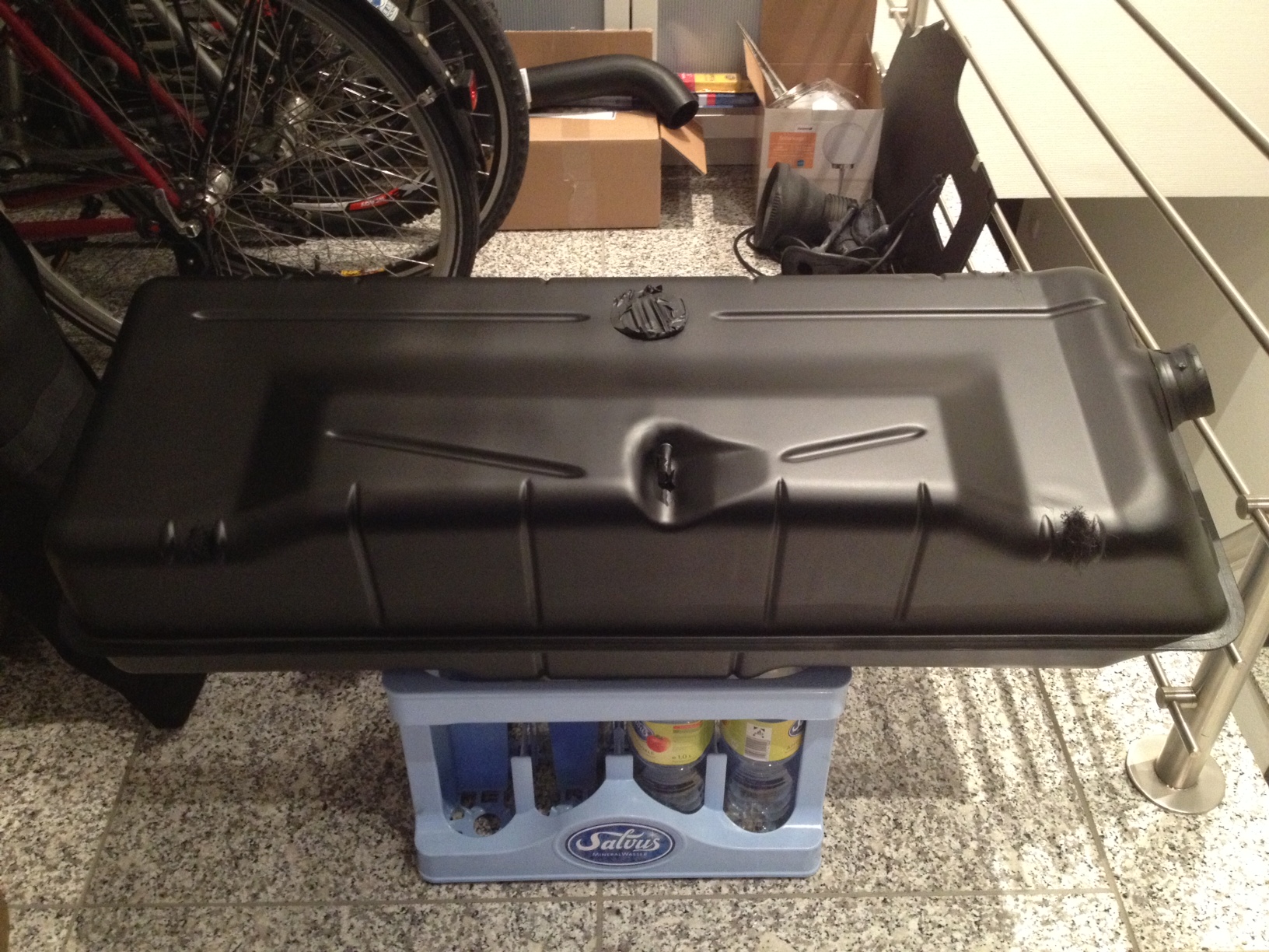 Und den Tank habe ich mal gemacht. War ja eh gut. Innen komplett mit Tankreiniger und Schrauben sauber gemacht und dann neu lackiert..