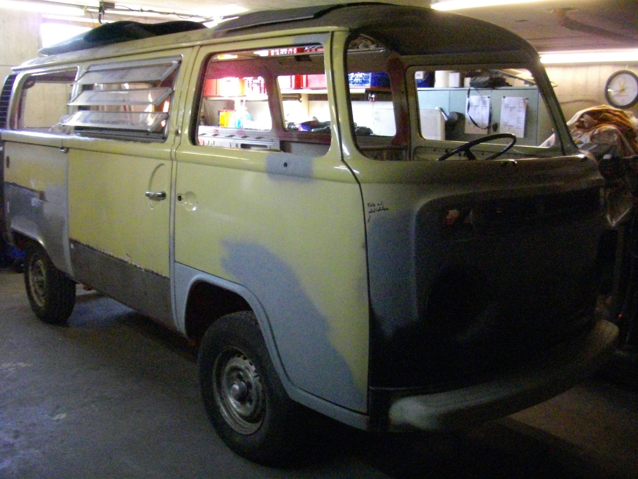 Dann wurde das Schmuckstück an ein junges Paar ins schwäbische verkauft, die noch schnell mal nen Schweißkurs machen wollten und den Bulli dann ohne große technische Ahnung oder Werkzeug anhand des Schweißkurses und des "Ikea-Teile-Bausatzes" der Vorbesitzer restaurieren.