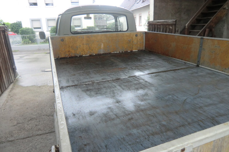Was ich auf jeden Fall lassen will ist das Holz der Pritsche weil es noch das erste ist, auch wenn an den Kanten der Ladefläche zum Führerhaus schon die oberen 2 Schichten durch sind.