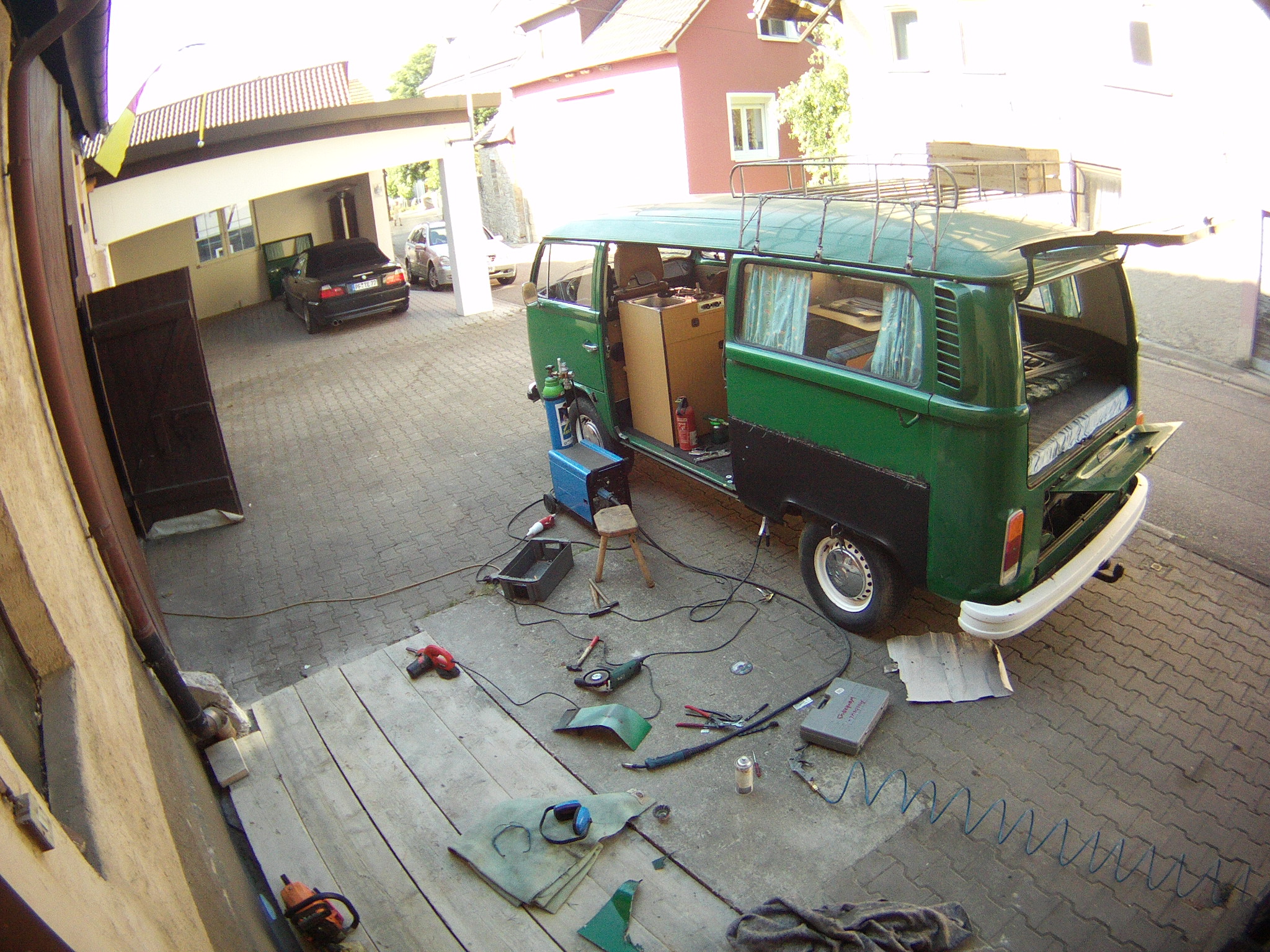 Bisher hatte ich nur kurz mal einen T3, aber wirklich nur kurz. Mein letztes großes Projekt war eine fast-Vollrestauration eines Rover Mini Cabrio-Umbau inklusive Lackierung in Eigenregie. Ganz so aufwändig soll es diesmal beim T2 nicht werden beziehungsweise die richtige Lackierung lass ich dann doch lieber einen Fachmann machen (obwohl sich das Ergebnis beim Mini auf jeden Fall sehen lassen kann, aber der Aufwand ist schon ordentlich...).