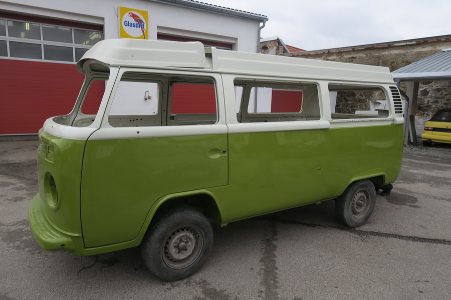Nach knapp 1000 Arbeitsstunden (Schweißen + Lackieren) vom rostigen Nudlsieb zum Bus wiederauferstanden.