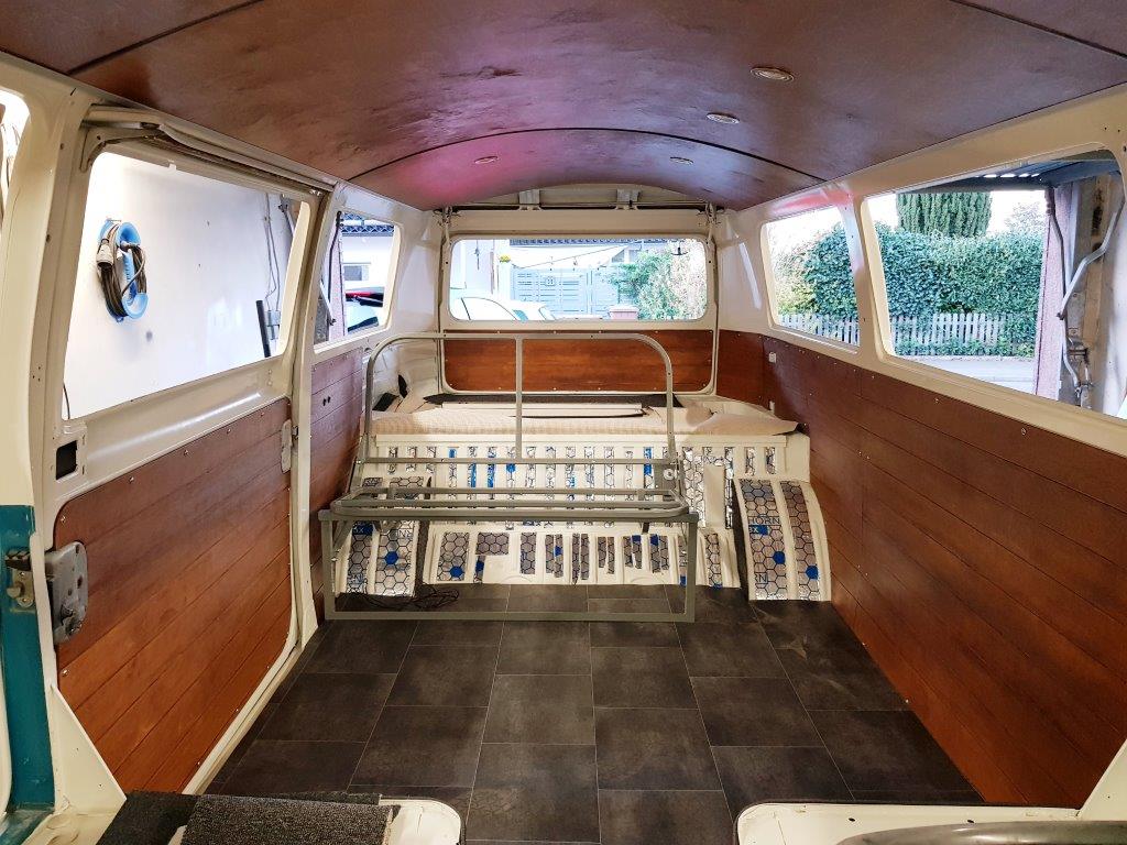 Da wir die Sitze und die Schlafbank zum Sattler bringen mussten wurde das Rusty Lee Bett eingebaut