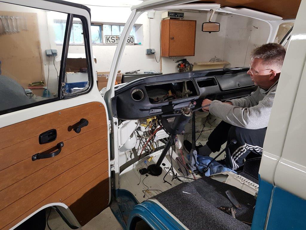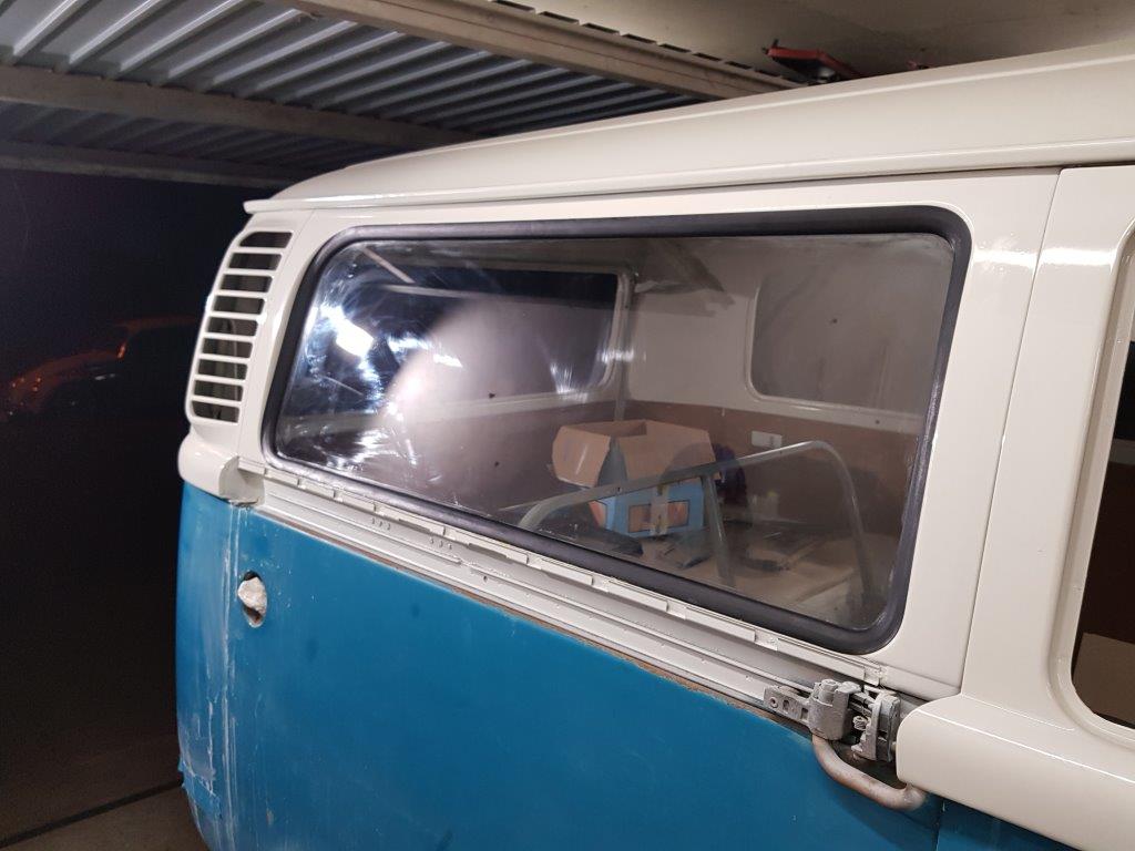 Die Fenster und das Armaturenbrett sind ebenfalls eingebaut. Die Drehfenster einzubauen bzw die Dichtungen waren eine Qual, aber sonst alle Fenster einsetzen ging Kinderleicht. Wir haben Dichtungen vom Veteranen Service genommen. Weil wir aktuell statt dem Lamellenfenster eine normale Scheibe einsetzen haben wir uns eine Dichtung von Werk34 geholt welche allerdings wirklich ******** rein ging.