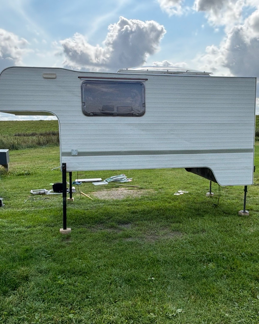 Das Absetzen geht recht einfach. Andersrum ist viel spannender. Zumal, wenn die Kabine in den weichen Boden sinkt. Trotz Holzlklötzen.