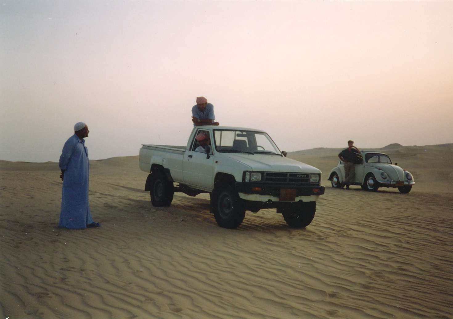 Ursprünglich waren wir damals mit zwei T2 unterwegs, doch in Hassi Bel Guebbour mussten die anderen umdrehen. Obwohl afrikaerfahren und hitzefest, haben sie bei 50° gestreikt (das war allerdings auch für die Algerier extrem). Übelkeit und nicht mehr schlafen können haben sie mürbe gemacht. Sie sind zurück in den kühleren Norden und wir haben uns auf dem Rückweg in Ouargla verabredet.