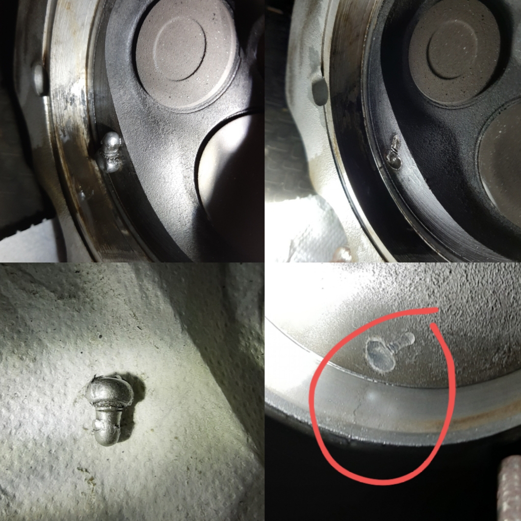 Ich habe dann dieses Wochenende genutzt um den Fehler zu suchen. Und siehe da. Die Ursache für das Klopfen und den Leistungsverlust sind gefunden. Dabei habe ich noch gesehen dass alle Kerzengewinde gerissen sind. Die Zündkerzen sind total vermockt. An Zylinder 1 war die Kerze lose. Wie plötzlich die Schraube in den Brennraum kommt wird mir wohl niemand sagen können. Leider ist der Zylinder 1 auch noch gerissen...