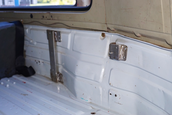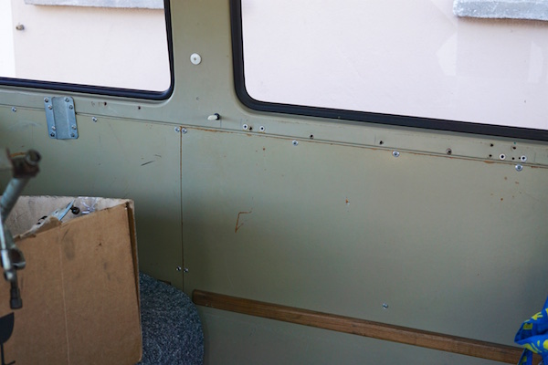 hinten wurde auch schwer gelöchert und es sind noch auf einer Seite Halter der Feuerlöscher bzw. Pumpe vorhanden, allerdings auf der anderen Seite nur noch M8 Löcher.