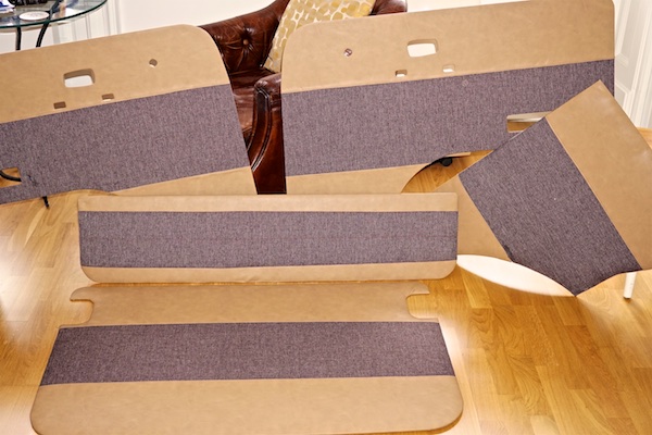 Jetzt mal Stoff und Kunstleder zugeschnitten, genäht und aufgeklebt - montiert werden sie erst im Frühling...