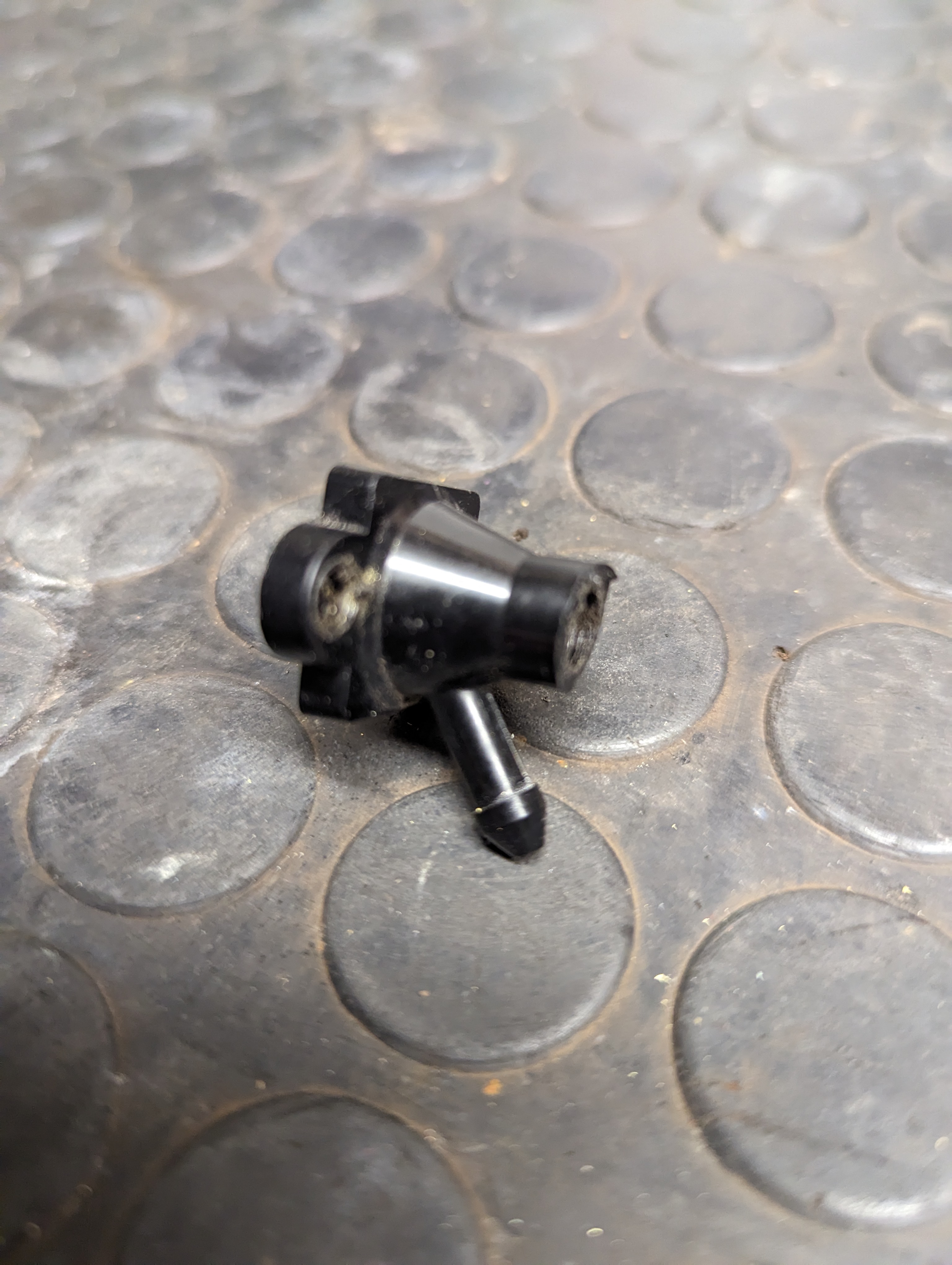 Schläuche abgezogen, Befestigungsnieten aufgebohrt, hinteres Teil abgezogen, etwas eingekürzt und ein 7,5mm Loch gebohrt. Das Loch mit einem kleinen Taster verschlossen und so justiert, dass der schwarze Pin vom Waschschalter genau auf den neuen Taster drückt. Anstelle der alten Nieten, 2 lange Schrauben eingesetzt, den Taster über ein Schließerrelais laufen lassen und dann eine Universalpumpe montiert. Fertig