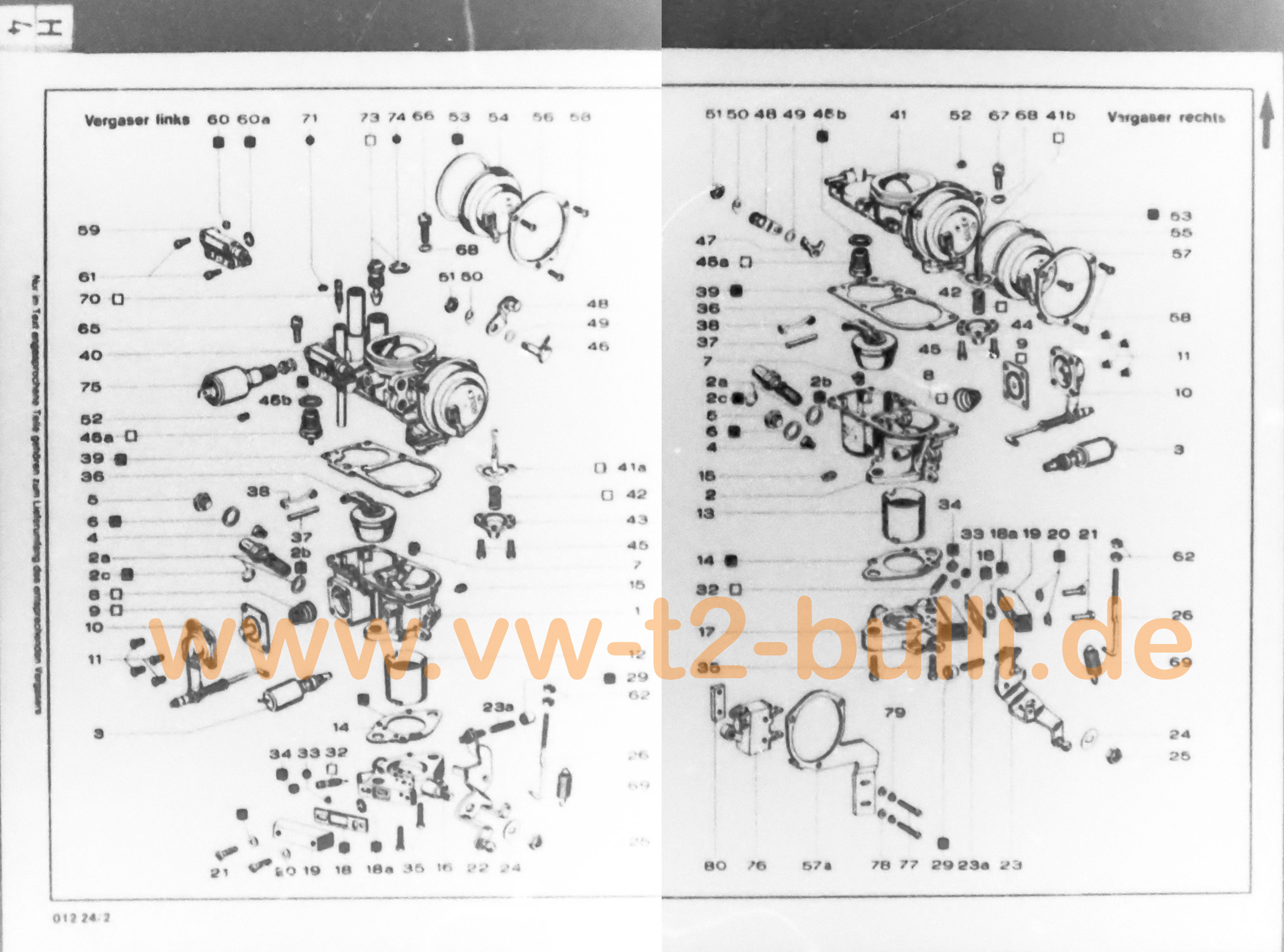(Oben im Kopf links finden sich die unterschiedlichen Vergaser-Bestellnr (z.B. E 17423) für Handschaltung vs Automatik -