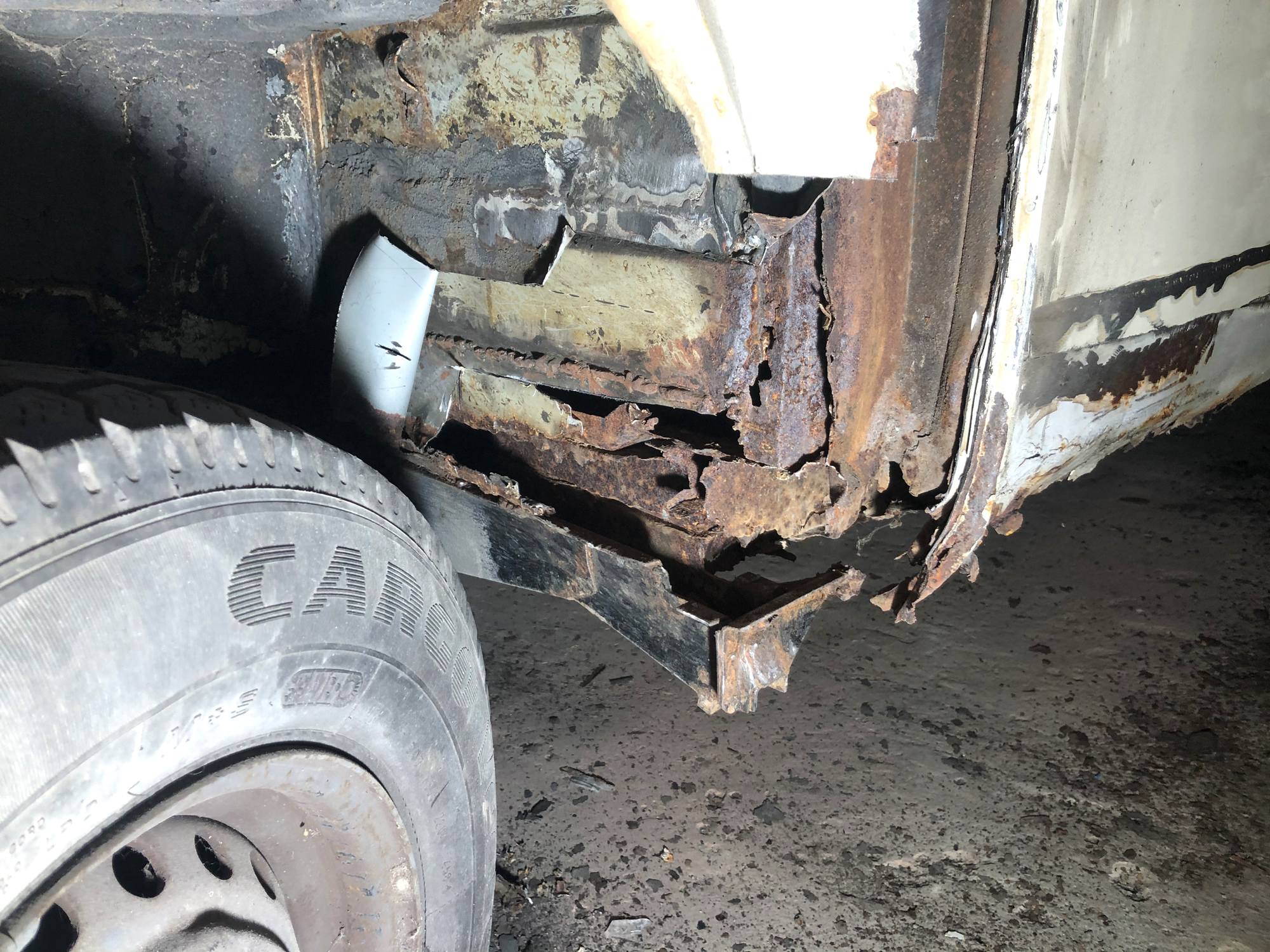 Vorn hätte man die Wagenheberaufnahme noch retten können und sicher wurde das Teil schon mal erneuert.