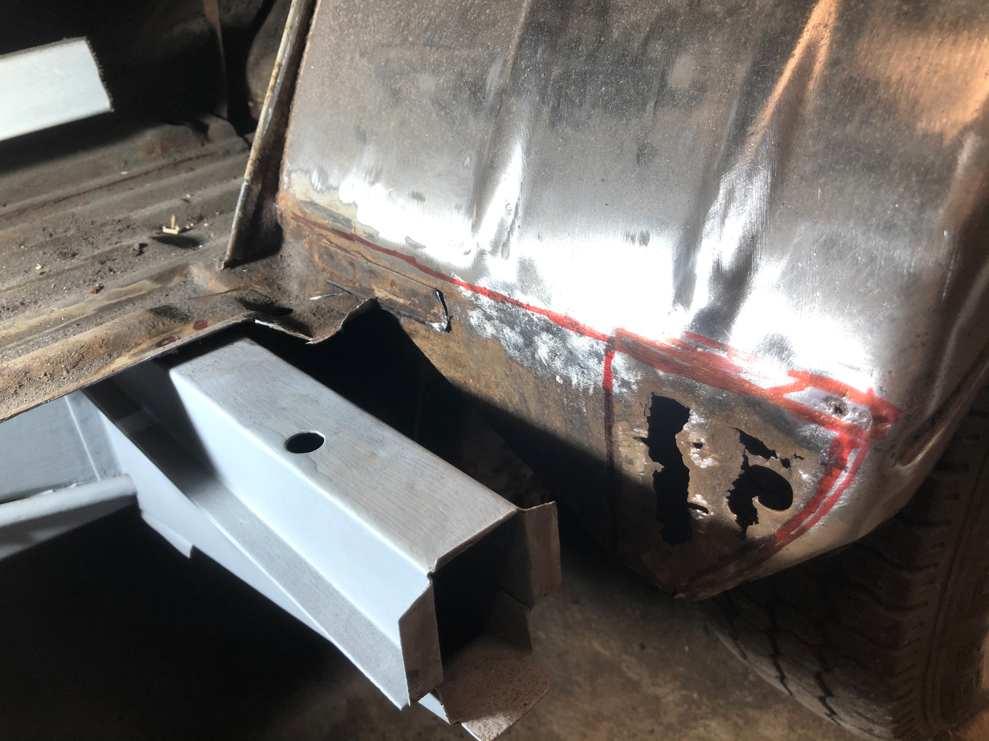 und das Bodenblech relativ gut vorgegeben. Am hinteren Radkasten habe ich vorher noch ein Reparaturblech