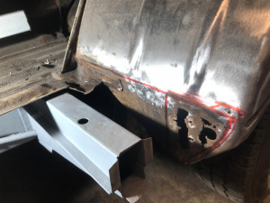 Mir ist natürlich sofort aufgefallen, daß sich vorne auf Höhe B-Säule meine Laderaumboden Reparaturbleche gut machen würden
