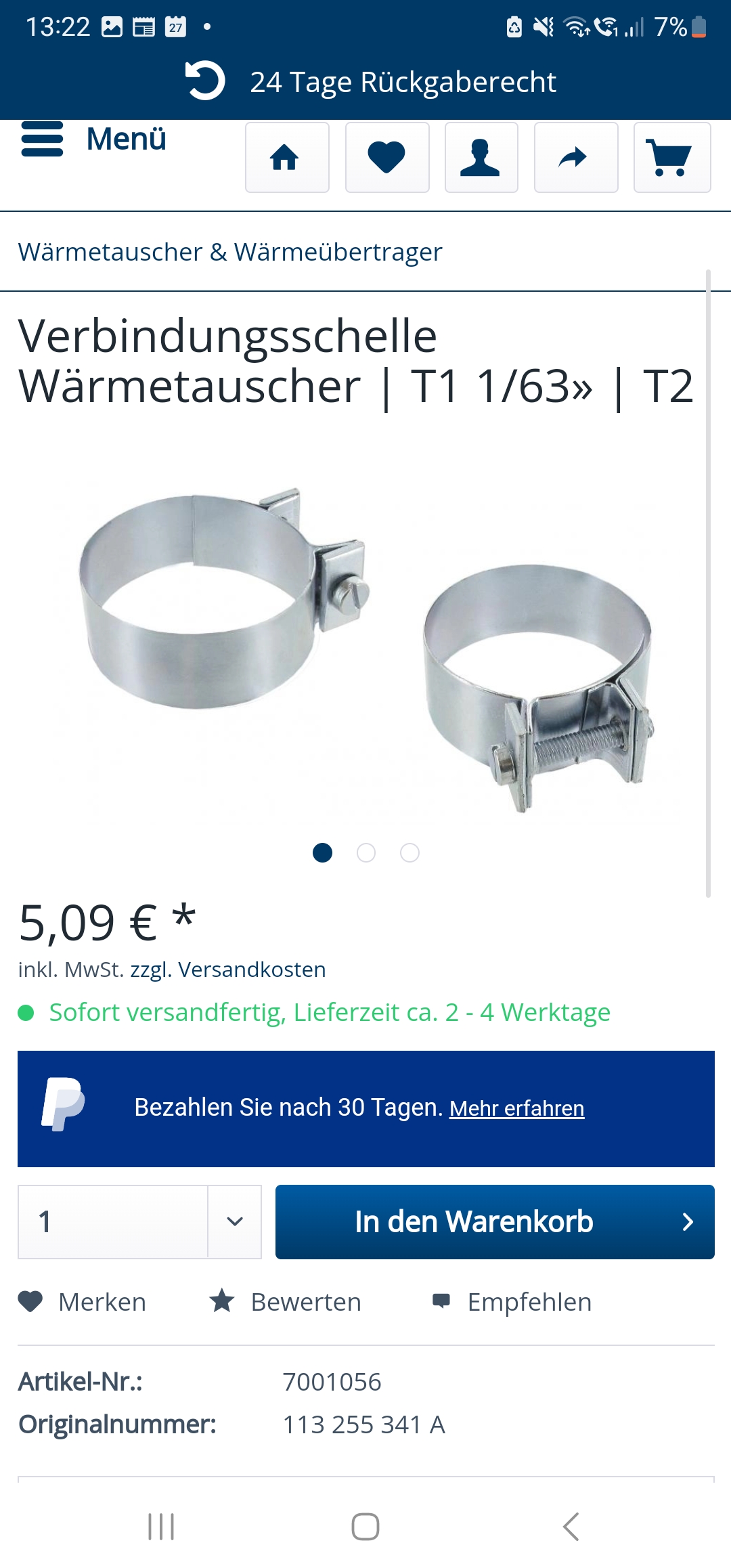 Schellen + Verbindungsnippel zum dichten Luftverschluss sind unterwegs.