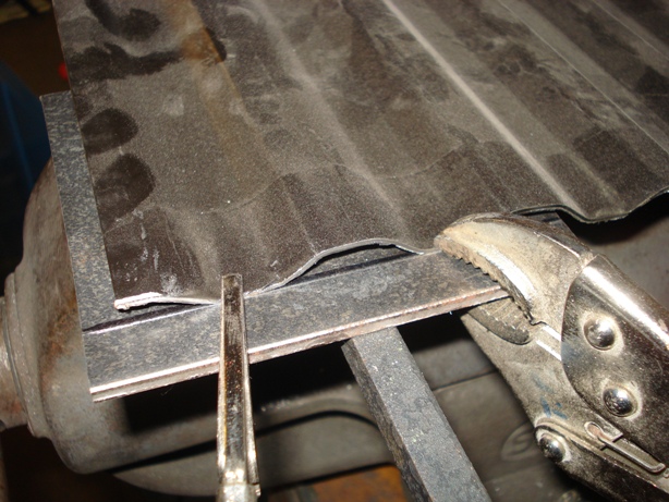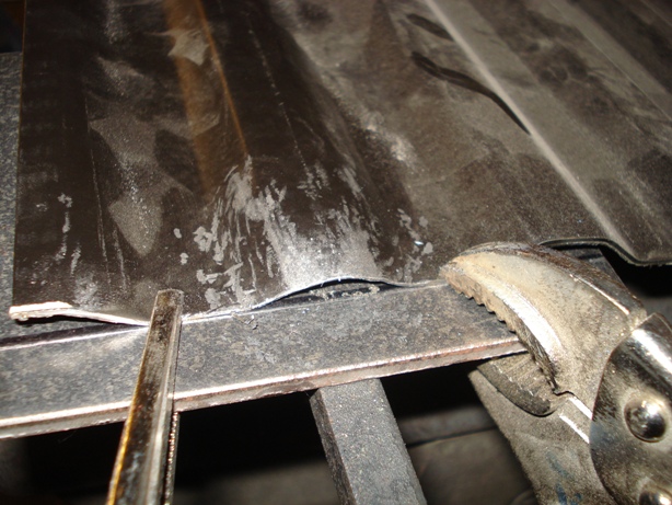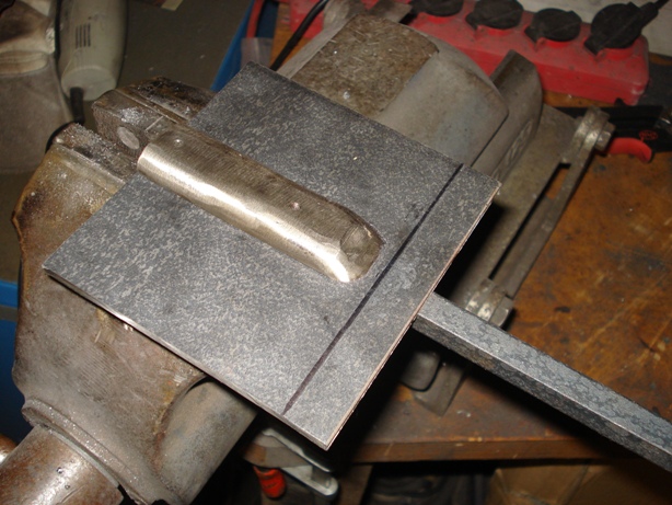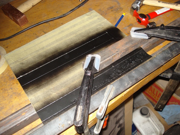 So wurde das Blech dann eingespannt und mit dem Hammer bearbeitet.