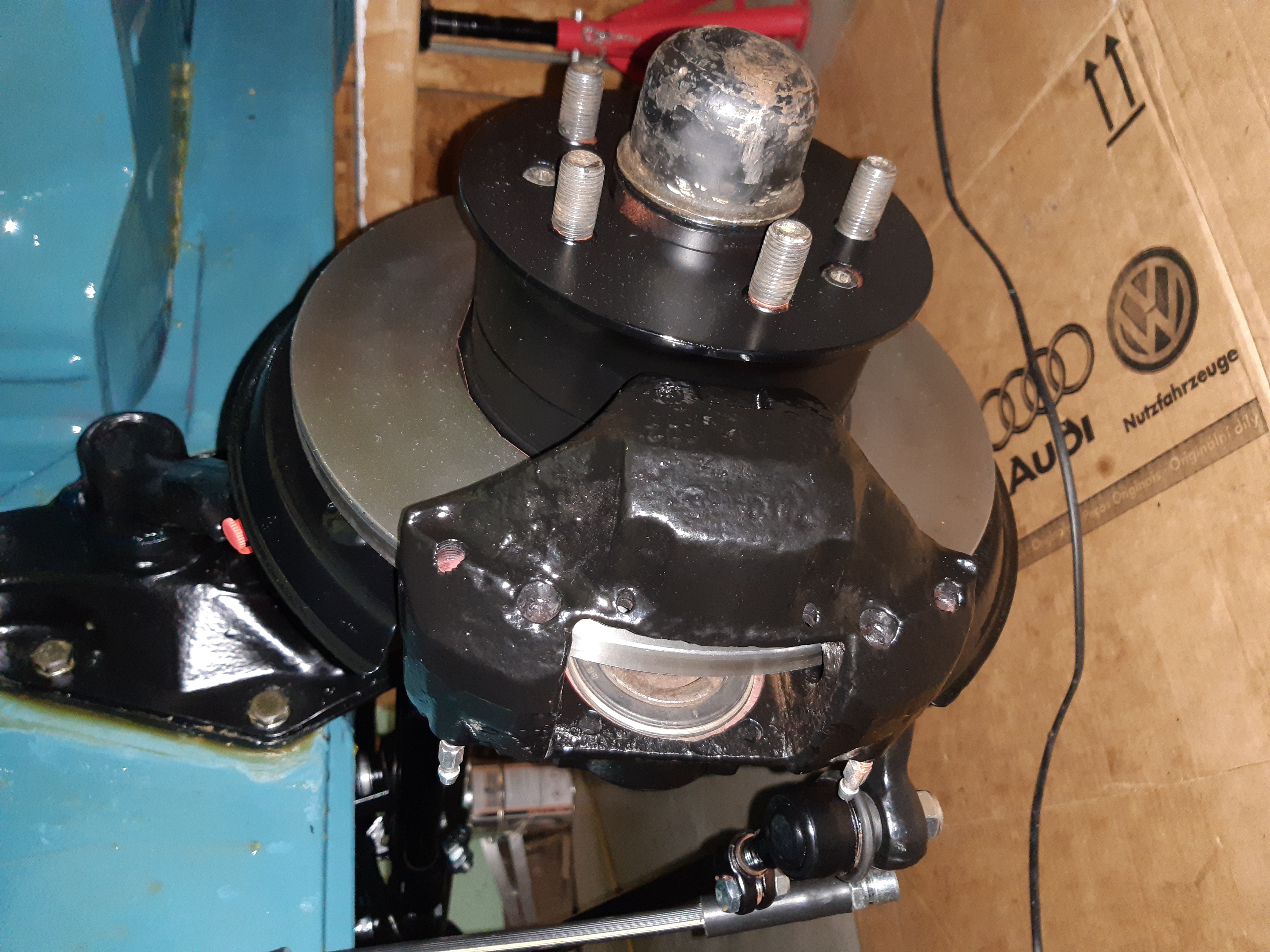 Ich habe in dem Atemzug auf T2B Achsschenkel und Bremse umgebaut.