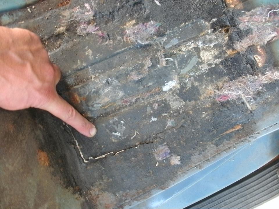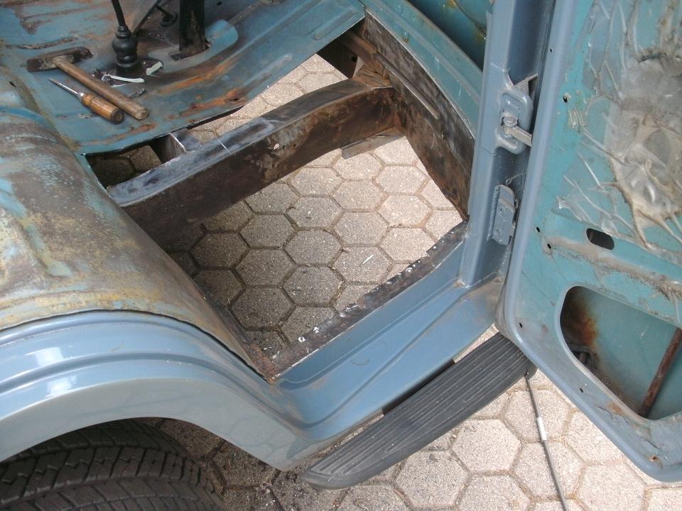 Das Beifahrerbodenblech wurde bereits von den Amis kunstvoll mit einem eingeklebten Blechstück "instand gesetzt" !