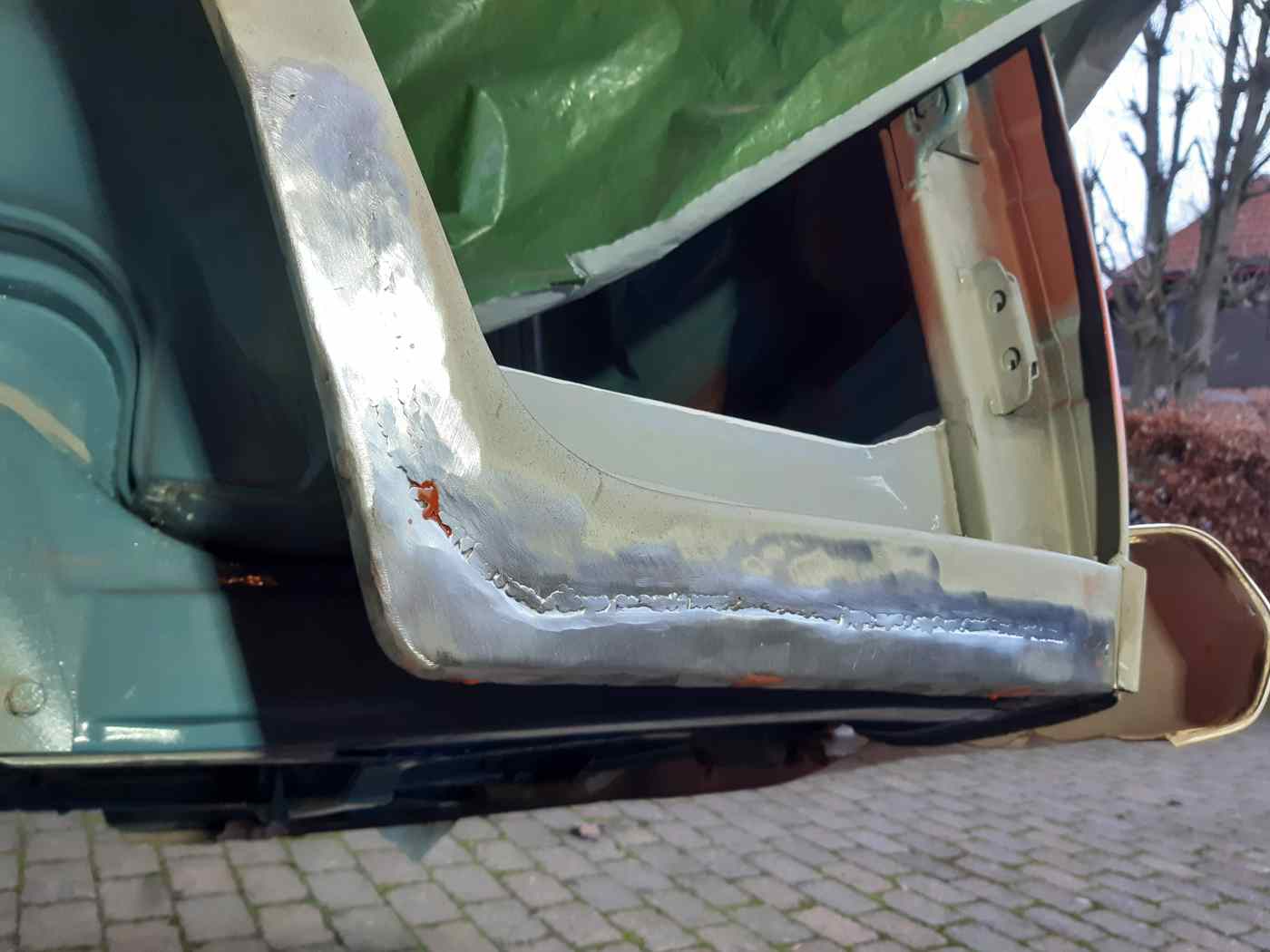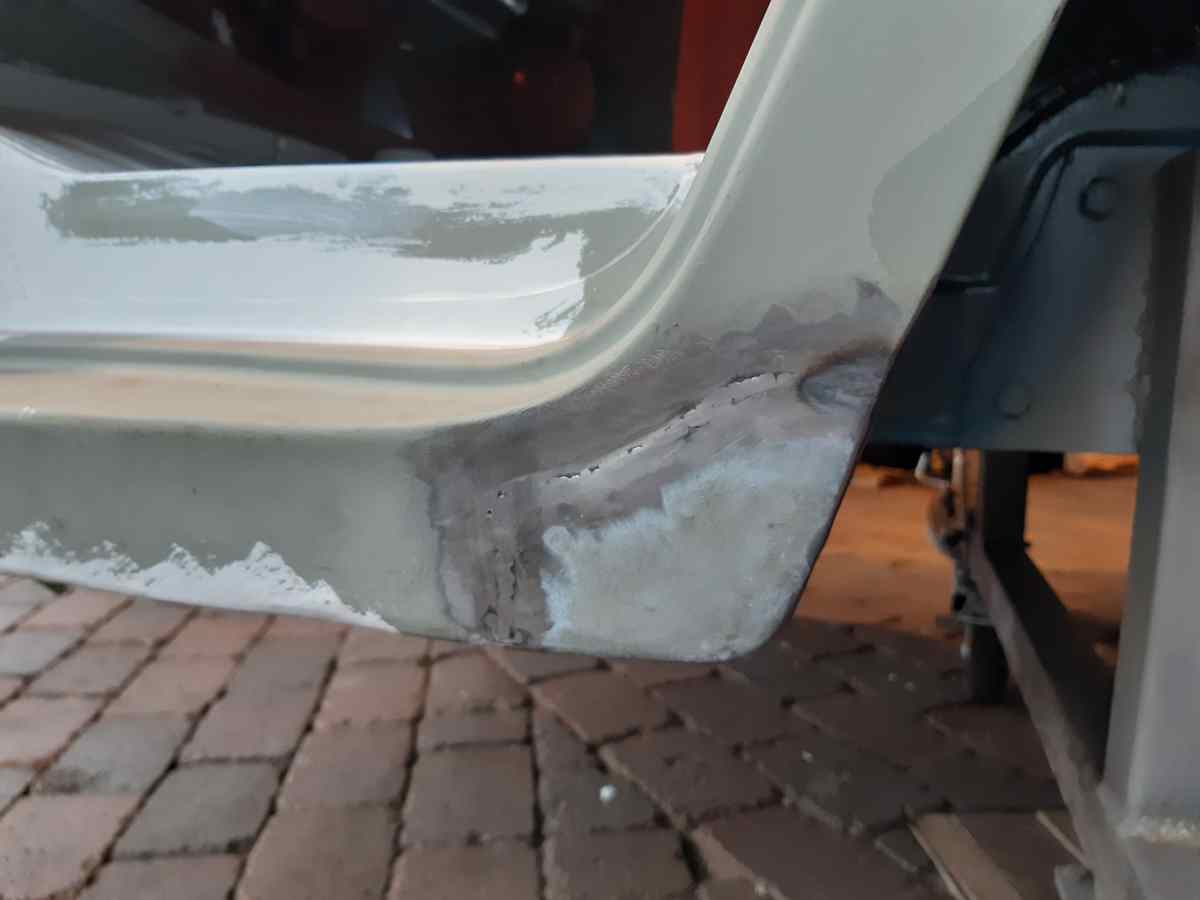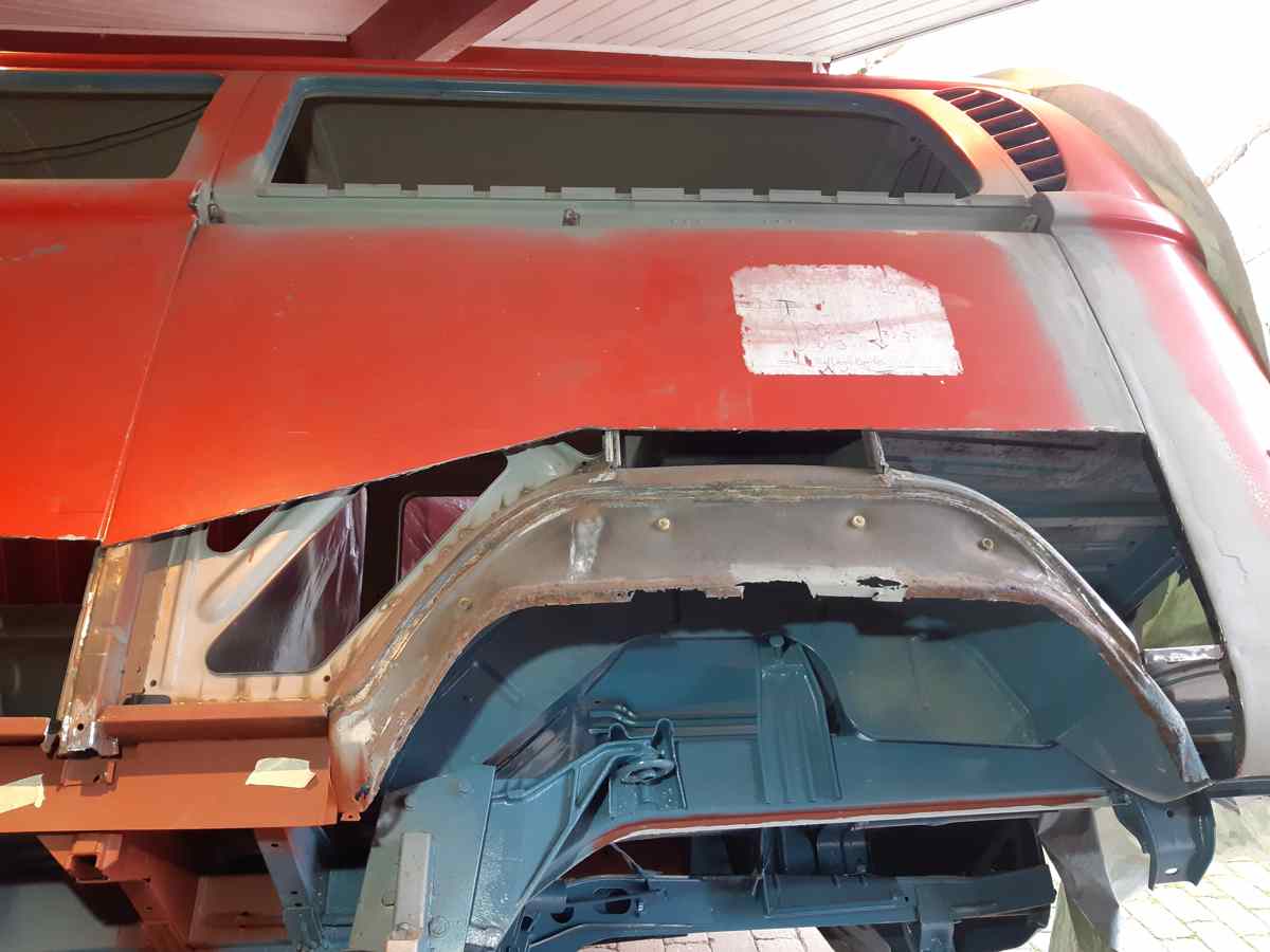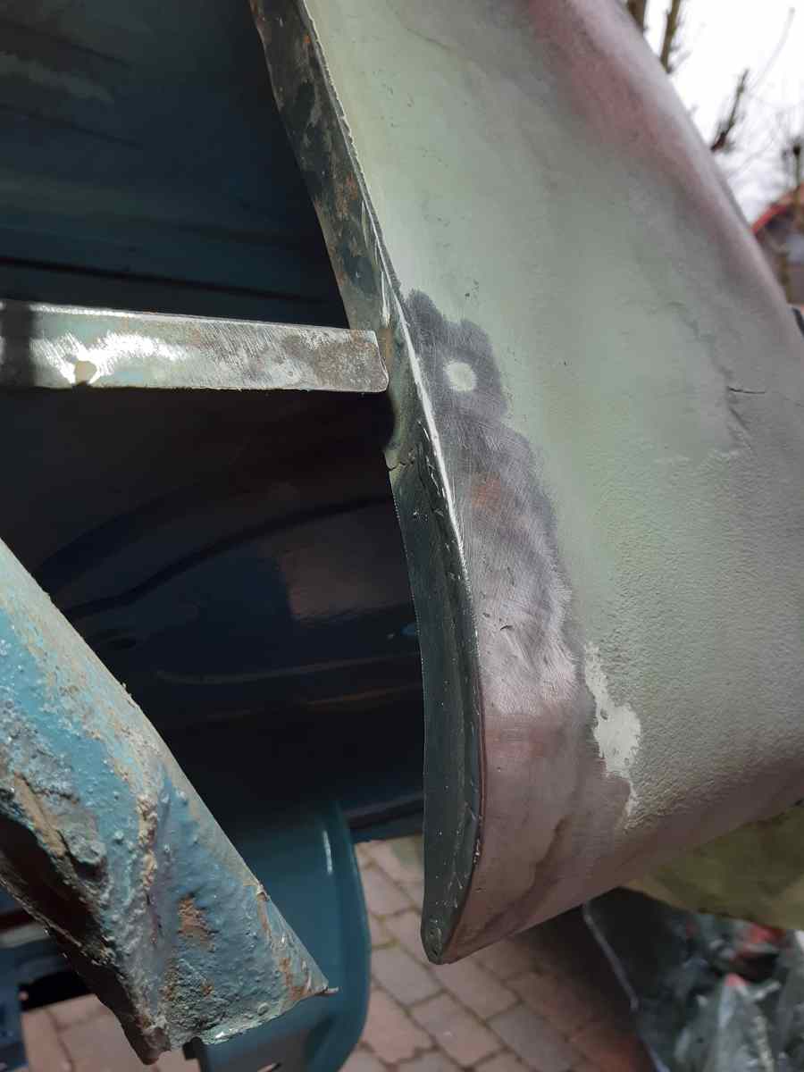 Es zeigte sich, das der frühe ausgestellte Radlauf die zweite Kannte nicht hat. Auf der linken Seite wurde das Seitenteil mal gegen ein neueres getauscht.