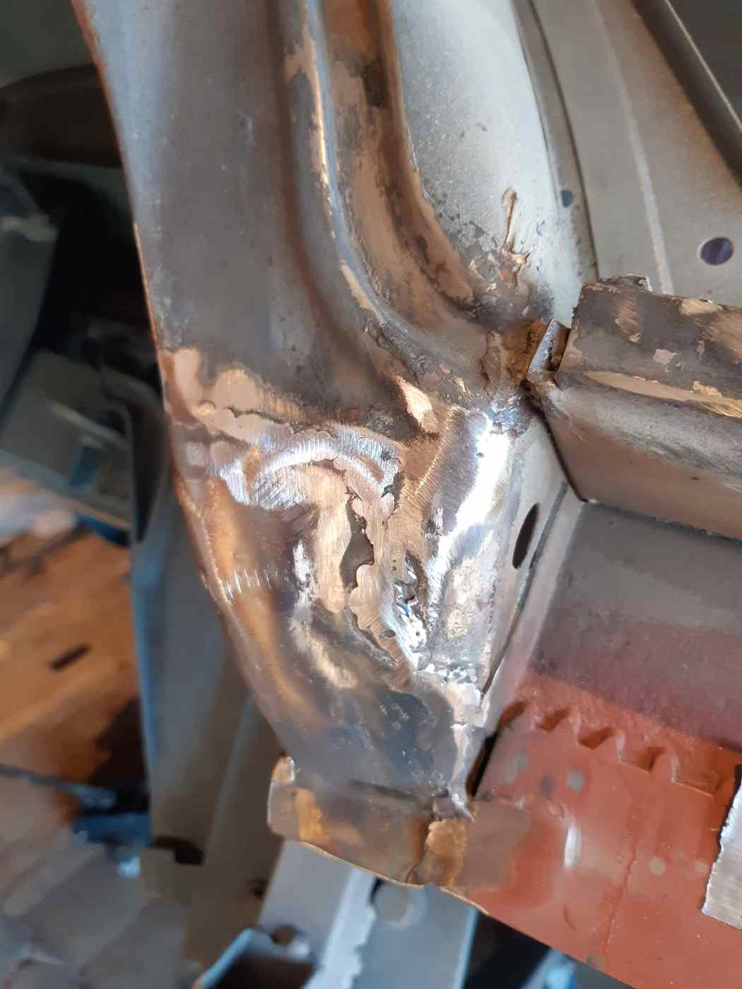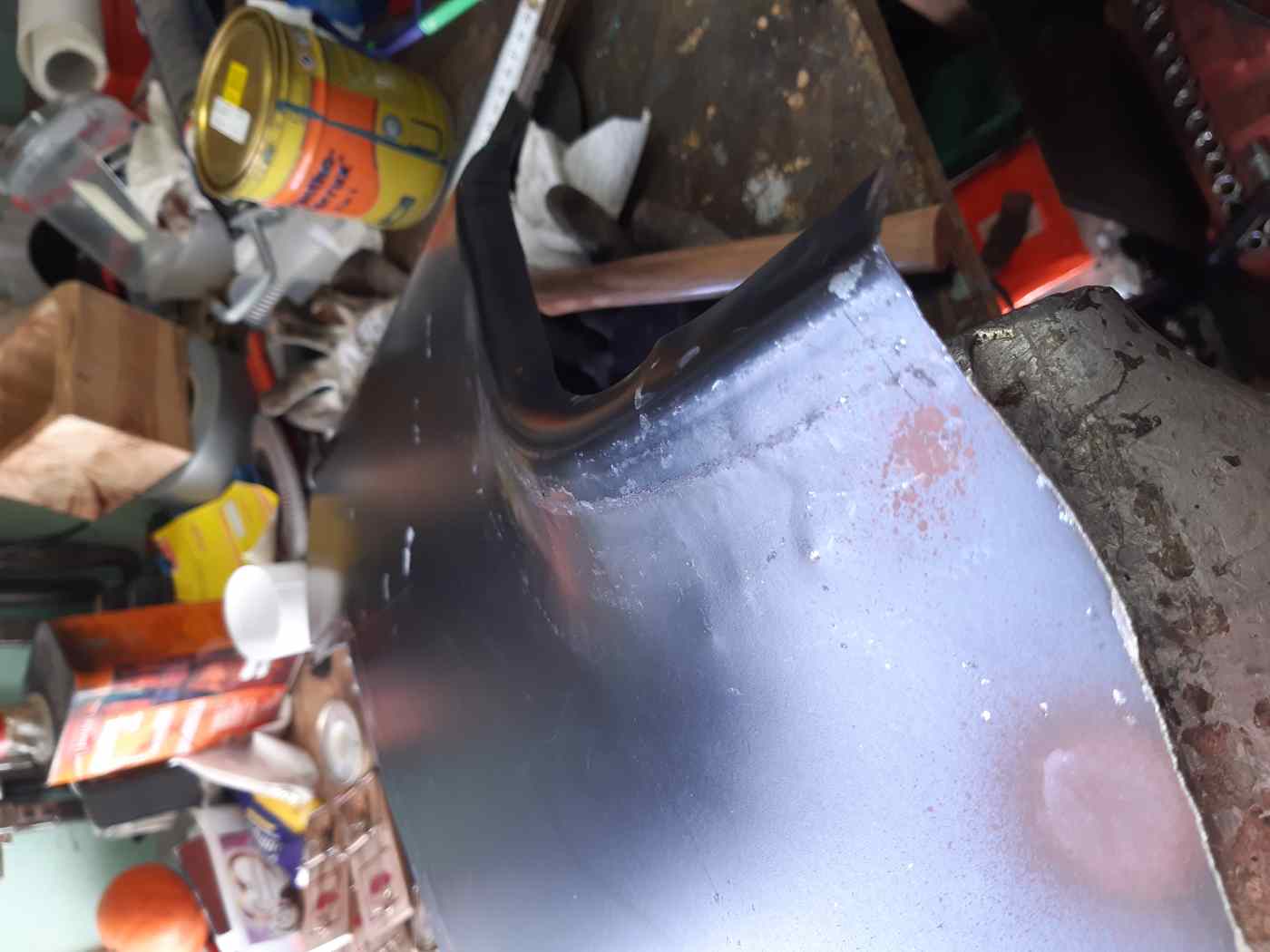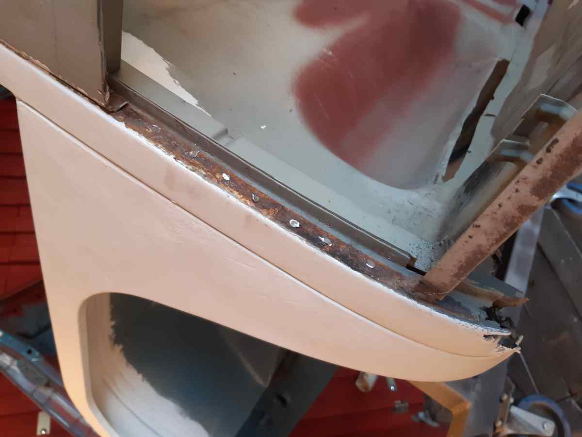Es zeigte sich, das der frühe ausgestellte Radlauf die zweite Kannte nicht hat. Auf der linken Seite wurde das Seitenteil mal gegen ein neueres getauscht.