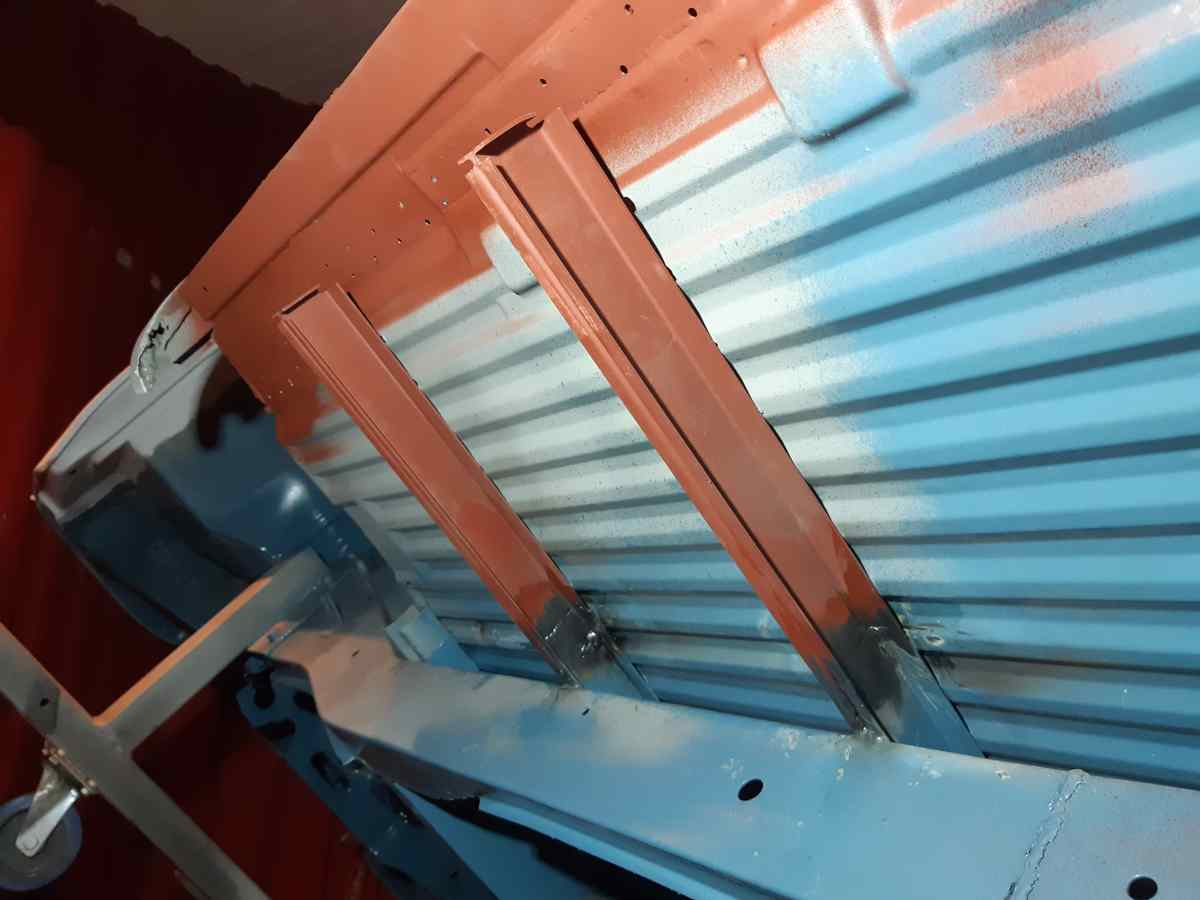 Blau ist Brantho Korrux 3:1 in Neptunblau eingefärbt. Und das auch direkt auf das Blech aufgetragen.