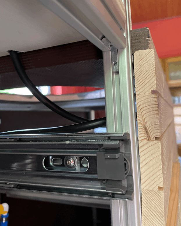 Das Innenleben besteht aus Aluprofilen im Format 20x20 mm mit einer 5mm Nut. Verwendet habe ich die zugehörigen Eckverbinder, sowohl außenliegende als auch innenliegende wenn z.B. eine Schublade oder eine Auszug in der Ecke liegt. Mit den Profilen spart man sich viele Innenwände und bleibt auch für Änderungen flexibel (was sich später noch als hilfreich herausstellen sollte