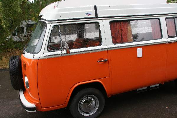 Es ist ein 74er T2b Westfalia, in schönem orange (und soll deshalb ERNIE heißen - vielleicht trifft er ja mal Bert von sandkastenheld).