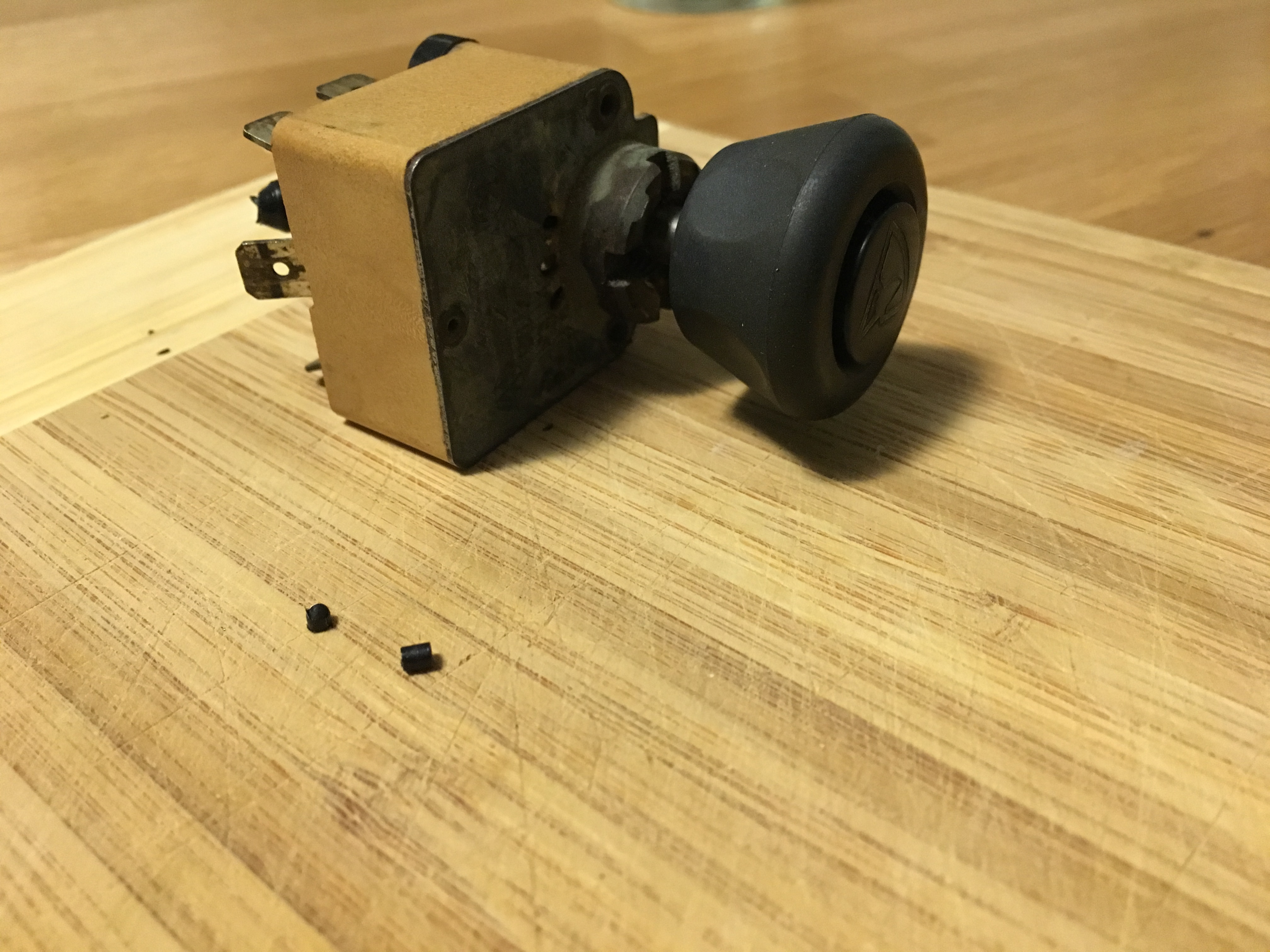 3. schrittweise auf 6mm aufgebohrt 4. den Mini-Schalter eingeschraubt 5. den Stab ein wenig eingekürzt 6. Fortsetzung folgt...