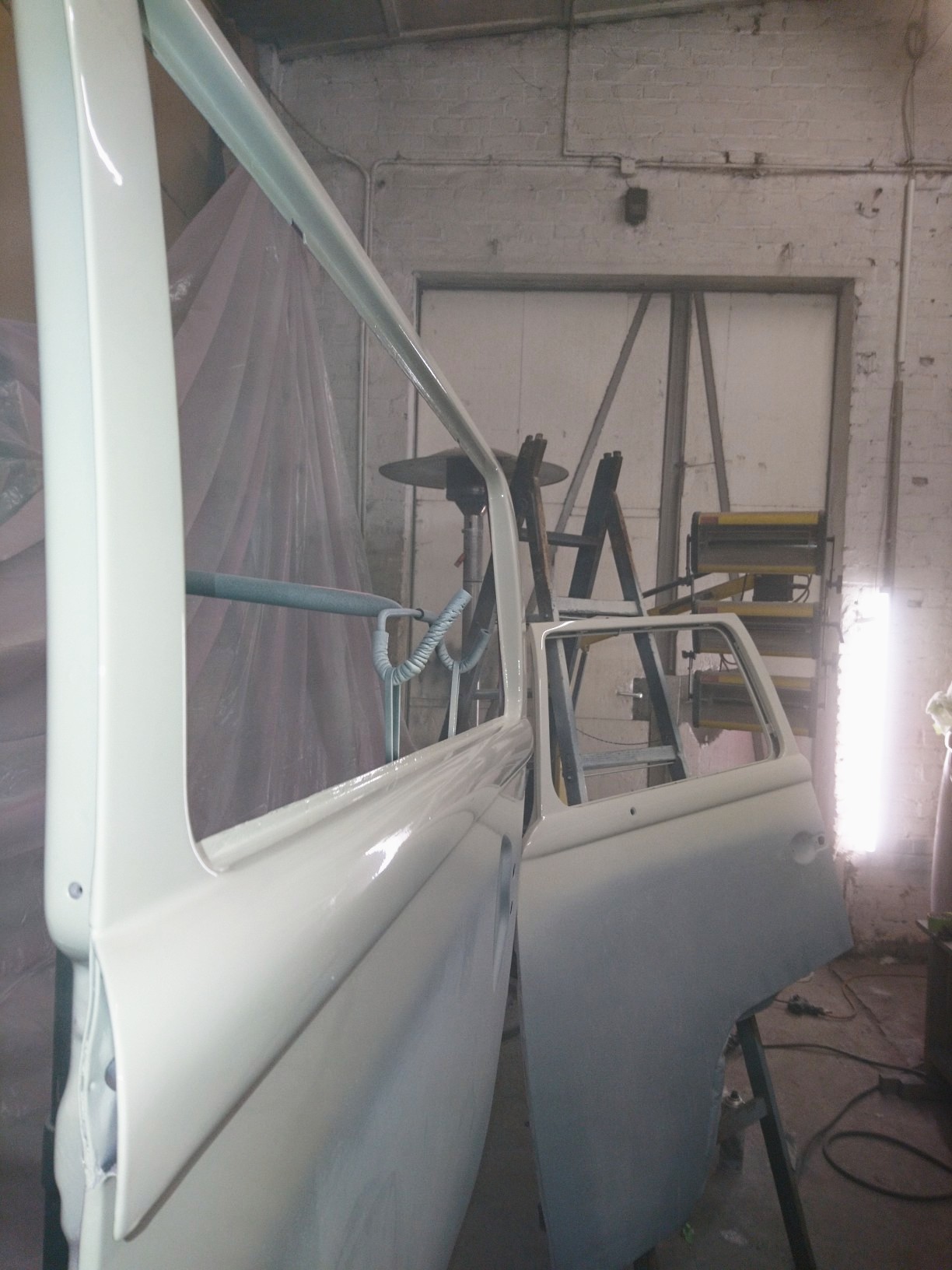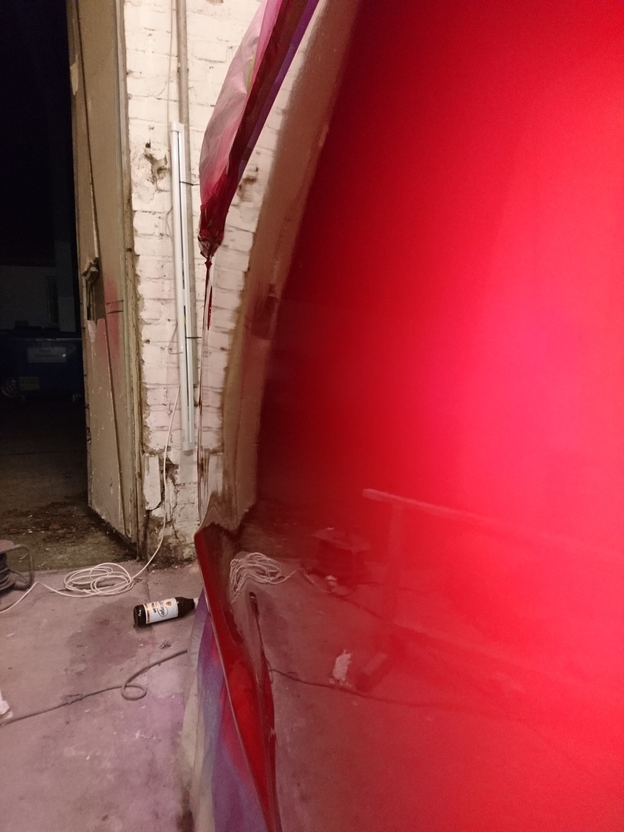 Ein guter Freund hat bei einer Werkstattauflösung diesen Infrarottrockner - ich weiß nicht mal wie das Ding heißt - abgestaubt und mir zur Verfügung gestellt. Irgendwie muss der Lack völlig durchtrocknen bevor ich abkleben kann. Langsam wird die Zeit knapp. Im März muss ich fertig sein
