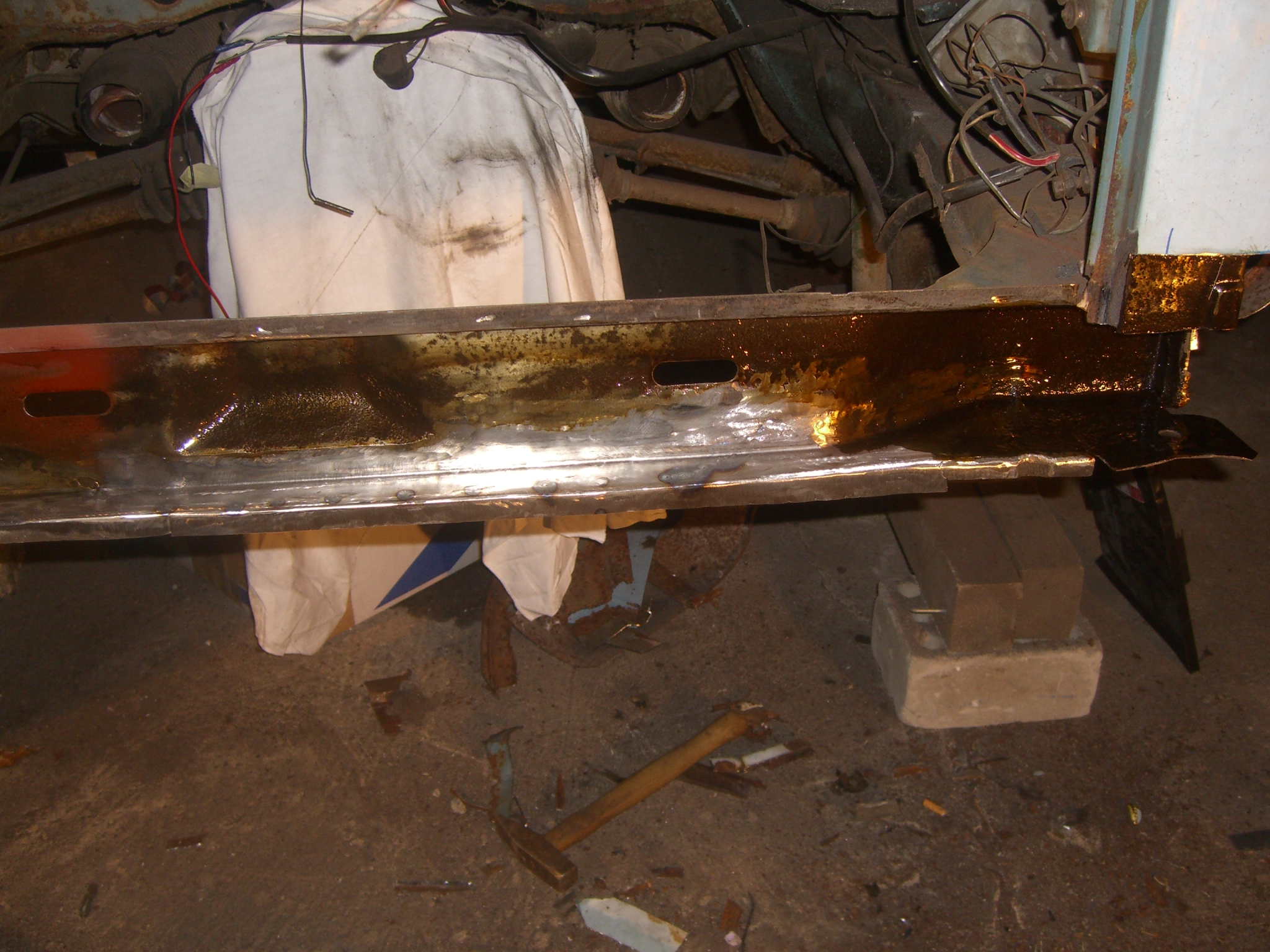 @Andy:Arbeite mich grade von der Ecke hinten rechts nach vorne. Dauert wohl noch, bis ich Batterieboden, Ecke und hintere Radlaufecke soweit habe, aber danach folgt der Schweller unter der Schiebetür. Ich denke, daß ich den Innenschweller nicht tauschen brauche, aber außen auf jeden Fall. ich weiß jedoch nicht wie es drinnen aussieht. Gibt's da auch noch nen Mittelschweller? Wenn ja, würden mich Bilder dazu interessieren.