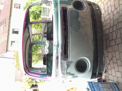 Nachdem der Bus die letzten fast 6 Jahre nur in der Garage stand und so gut wie nichts passiert ist, wurde der Bus letzte Woche abgeholt und jetzt machen wir in einer großen Halle und mit Unterstützung von einem Karosseriebauer die Karosseriearbeiten. Er unterstützt uns dabei Tatkräftig und ich habe jetzt ein paar Monate Zeit vor allem die Achsen zu überholen / pulverbeschichten usw