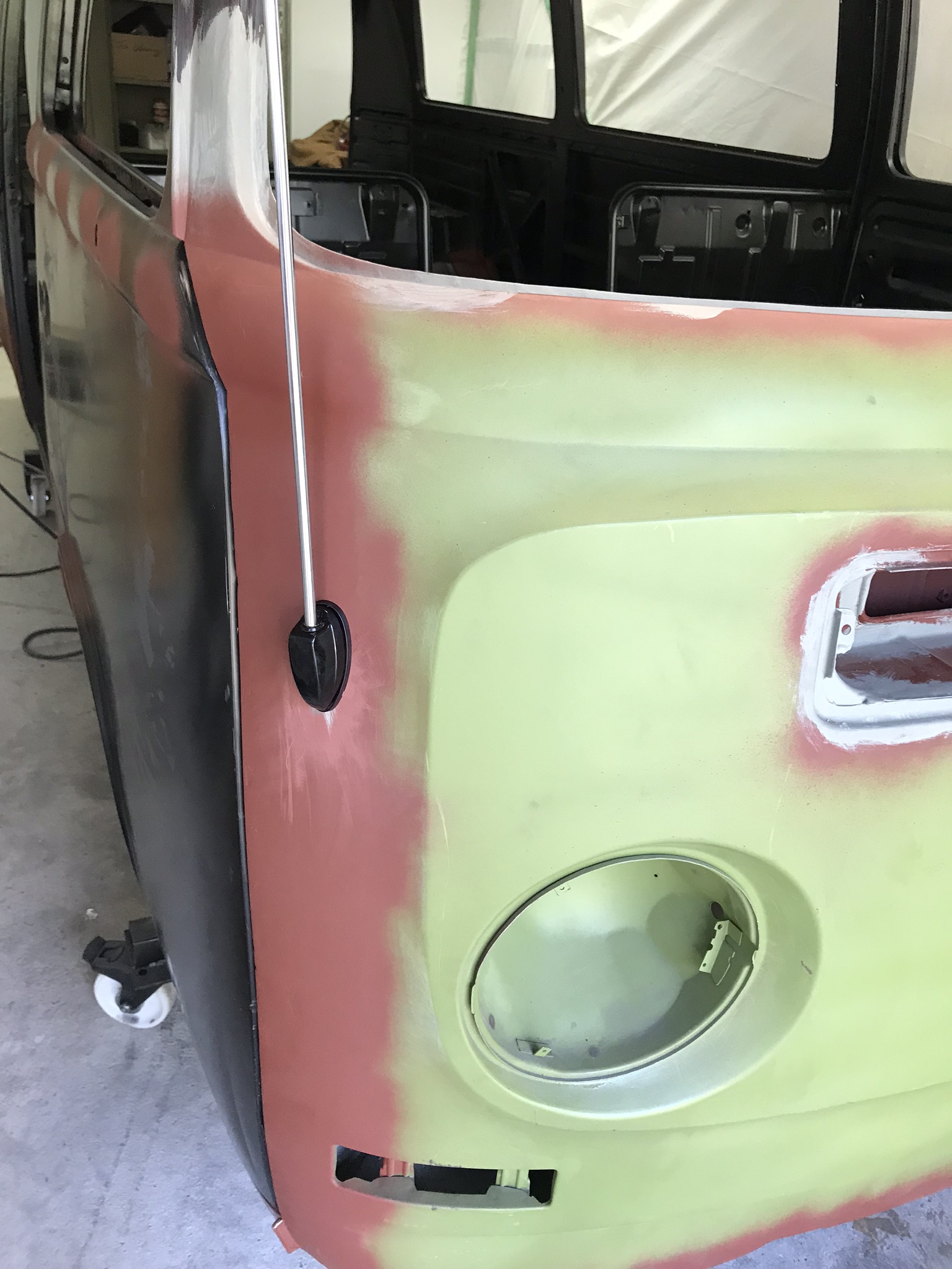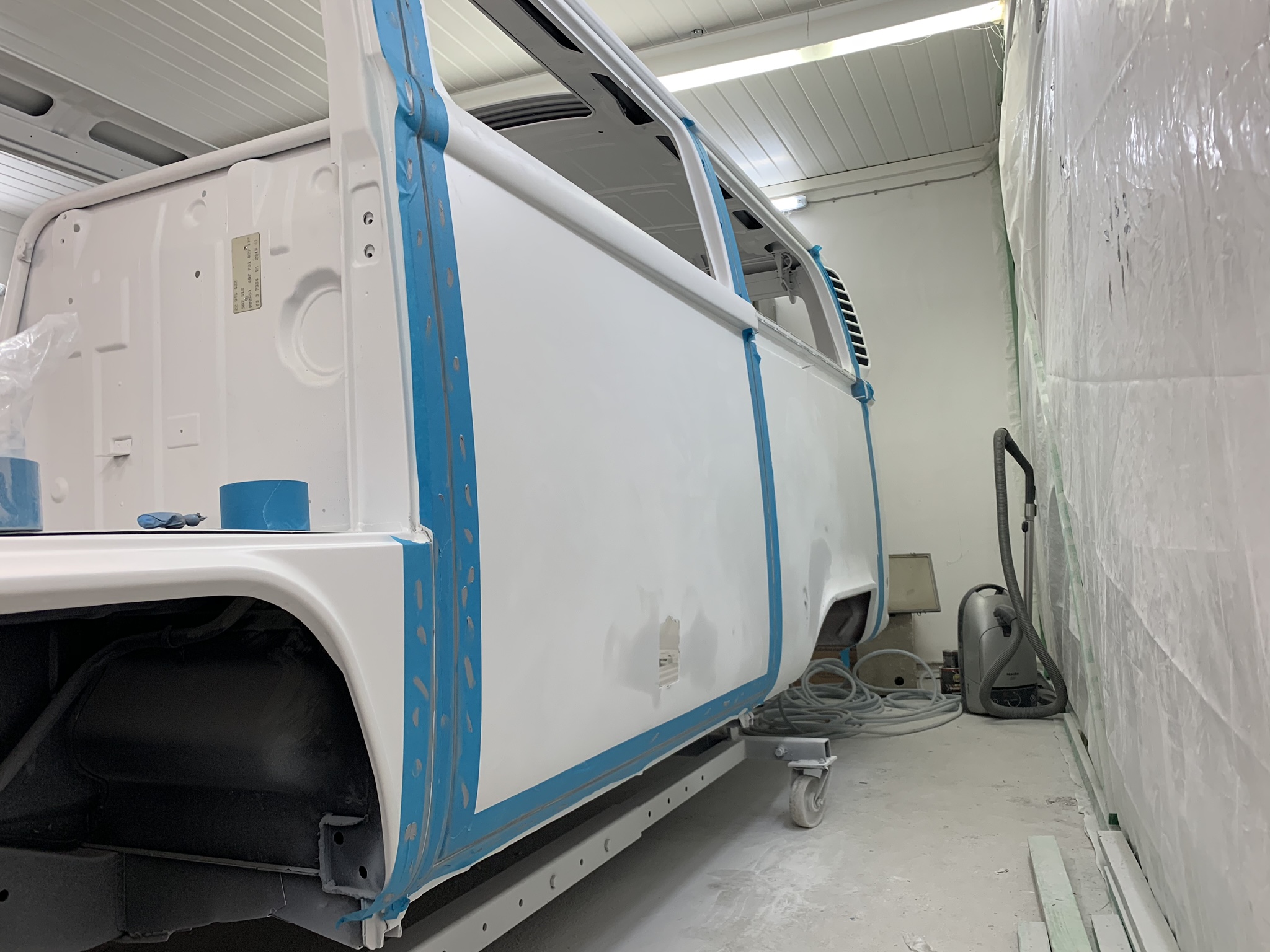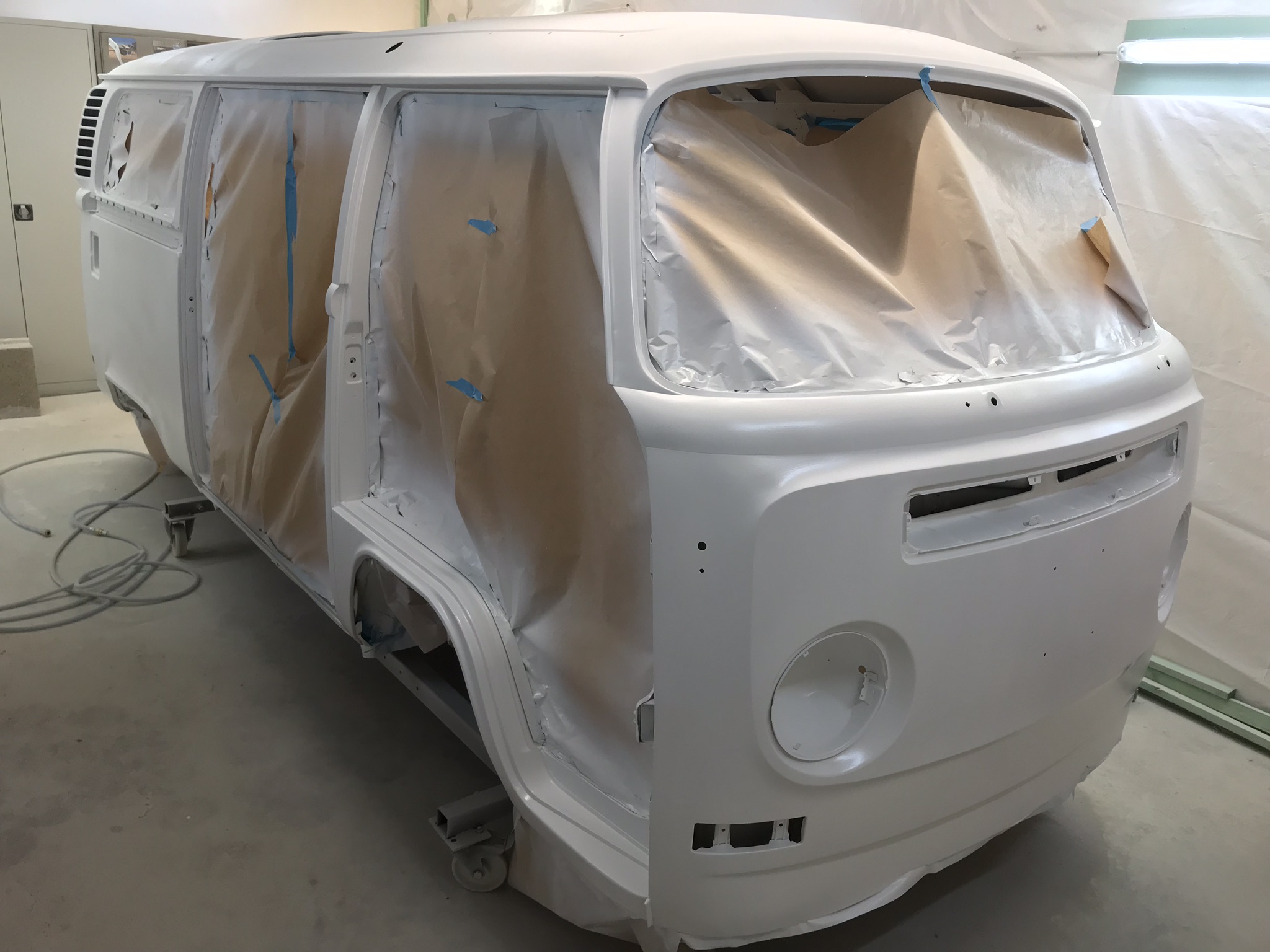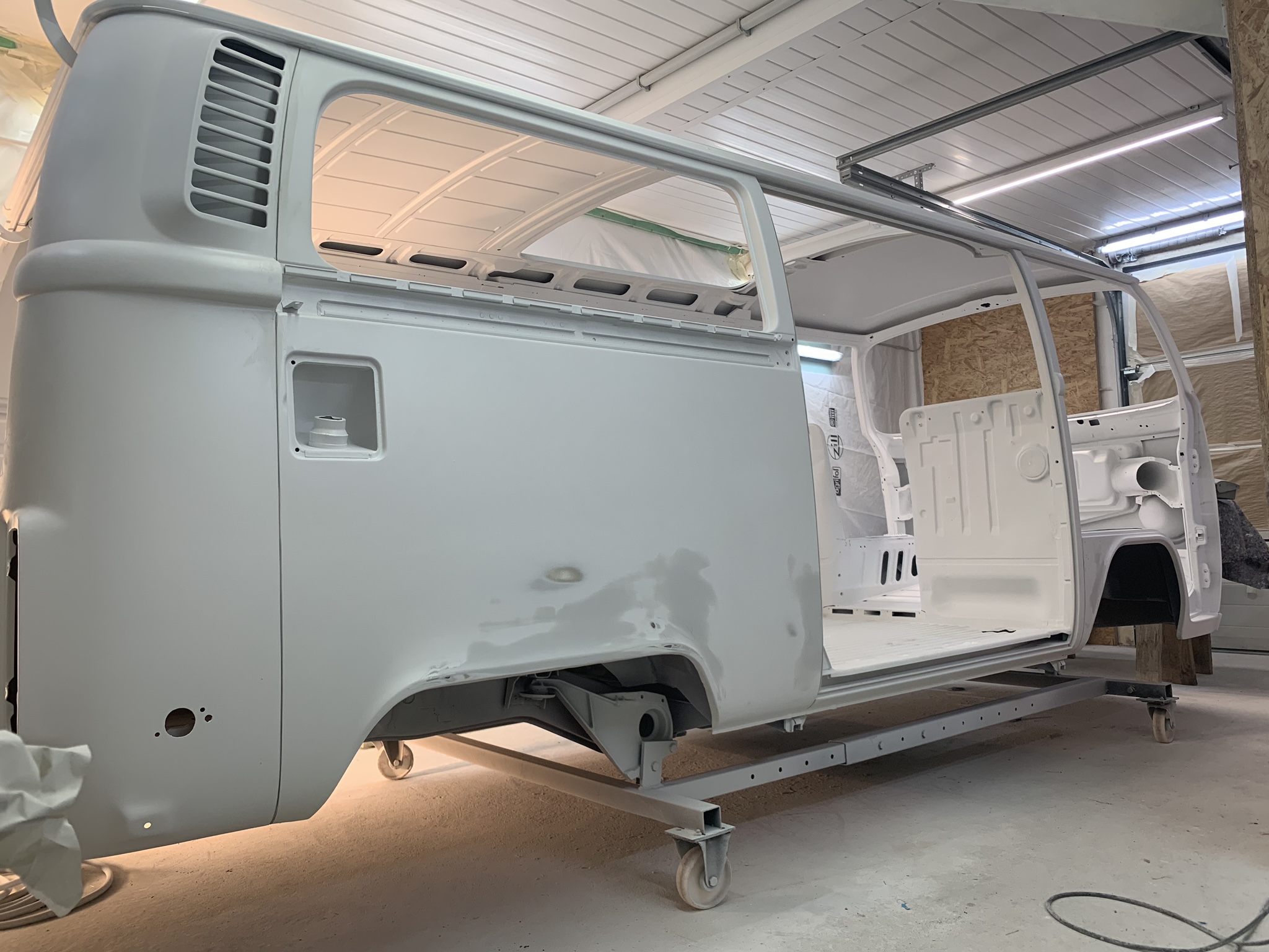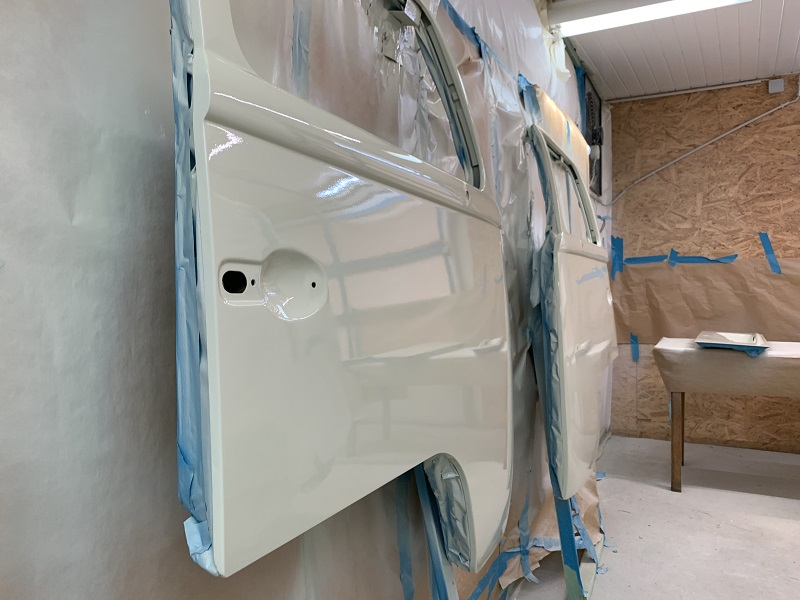 Inzwischen ist die Hauptkarrosse aber bereit für die letzte(n) Lackschicht(en), danach kommen die Türen und die Anbauteile.