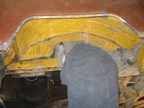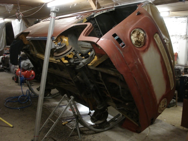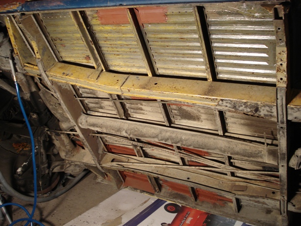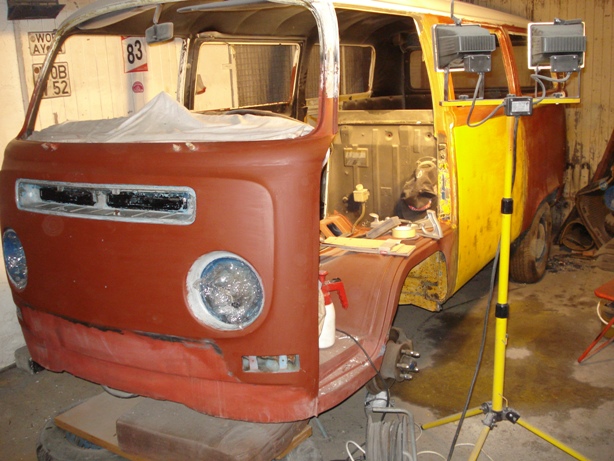 So ähnlich ist´s bei meinem Bus. Der lief zuletzt in Palo Alto und schien auf den ersten (scheinbar zu flüchtigen) Blick bis auf ein paar kleinere Schwachstellen recht solide zu sein. Im Großen und Ganzen ist mein Bus auch wirklich super von der Substanz. Die meisten Rostschäden sind auf das Unvermögen der Vorbesitzer zurückzuführen, die an mehreren Stellen einfach mit Spaxschrauben durch den Boden geschraubt haben. Ringsherum sind dadurch größere Rostlöcher entstanden. Auch die Front und das linke Knieblech wären sicher nicht so gammelig gewesen, wenn der Bus in seinem früheren leben nicht schon einen oder mehrere leichte Unfälle gehabt hätte.