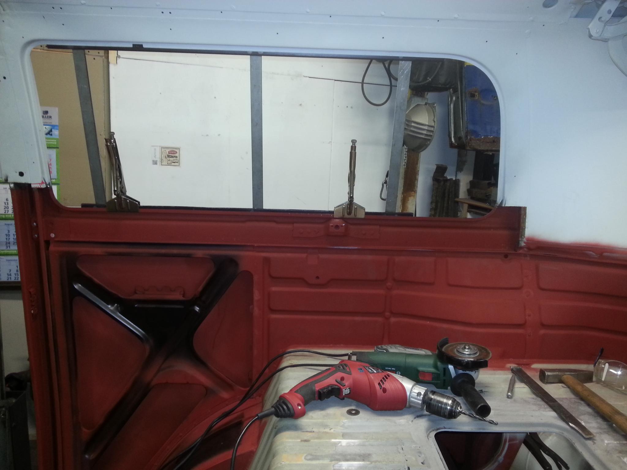 Heute habe ich die rechte Seitenwand weiter ei geschweißt, den inneren Scheibenrahmen vorsichtig entfernt und die Innere Verkleidung der C-Säule neu angefertigt.