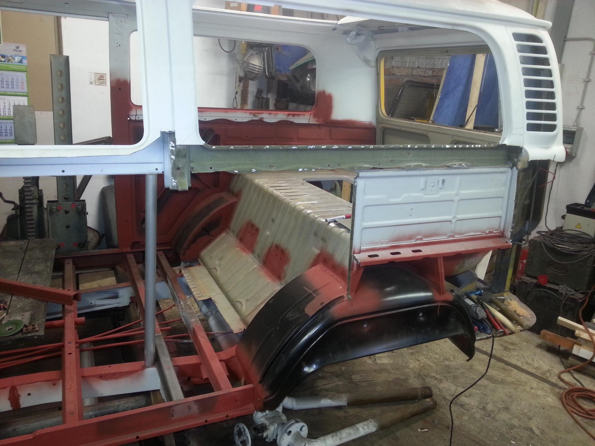 Die alte, hintere linke Seitenwand ist vollständig rausgetrennt und die neue wird demnächst zum einschweißen vorbereitet.