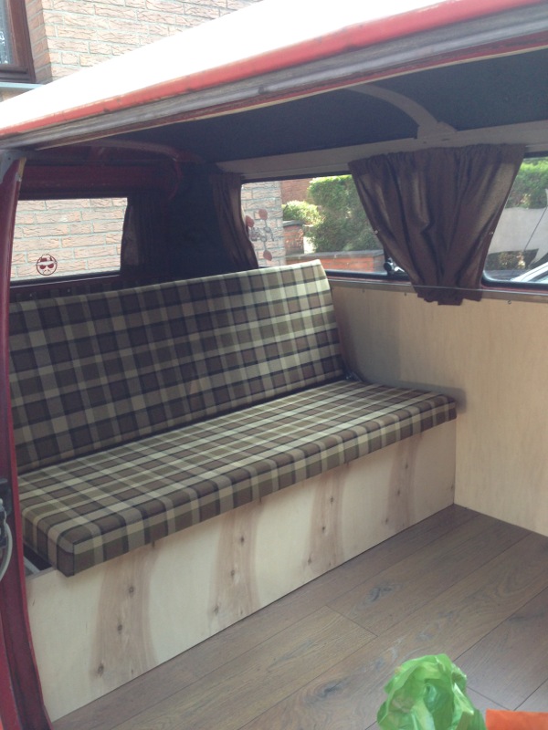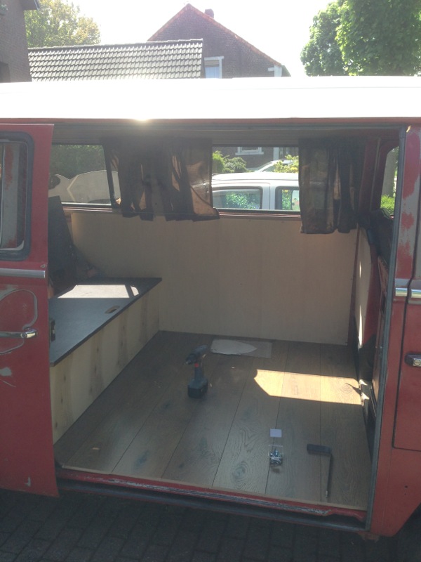 ich kann morgen die Verkleidung beim Schreiner holen;-) einbauen,... Laminat verlegen,.... Bank anpassen und dann die frisch bezogenen Polster einsetzten