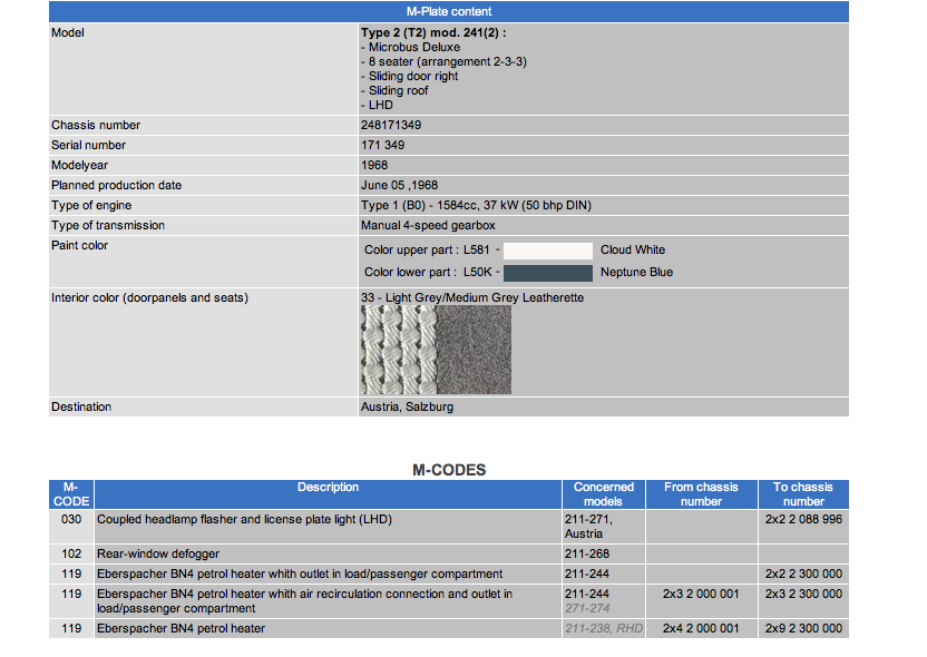 Die M-Plate entschlüsselst Du am Einfachsten auf www.vw-mplate.com .