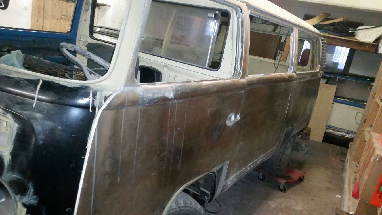 Bin durch Zufall an eine abgebrochene T2 Restauration gekommen. 79er Krankenwagen aus Österreich. Schweißarbeiten so gut wie fertig. Aber unterboden muss noch Blank gemacht werden.. Und die Hinterachse brauch etwas zuneigung. Obenrum aber schön gemacht alles Frontmaske, Kniestücke usw. hat ein Karo. Bauer im Ruhestand erledigt ink. Zinn. Nur untenrum bin ich mit der Qualität der Schweißarbeiten nicht überall zufrieden aber da werde ich nochmal selbst hand anlegen. Das war wohl der Vorbesitzer selbst.