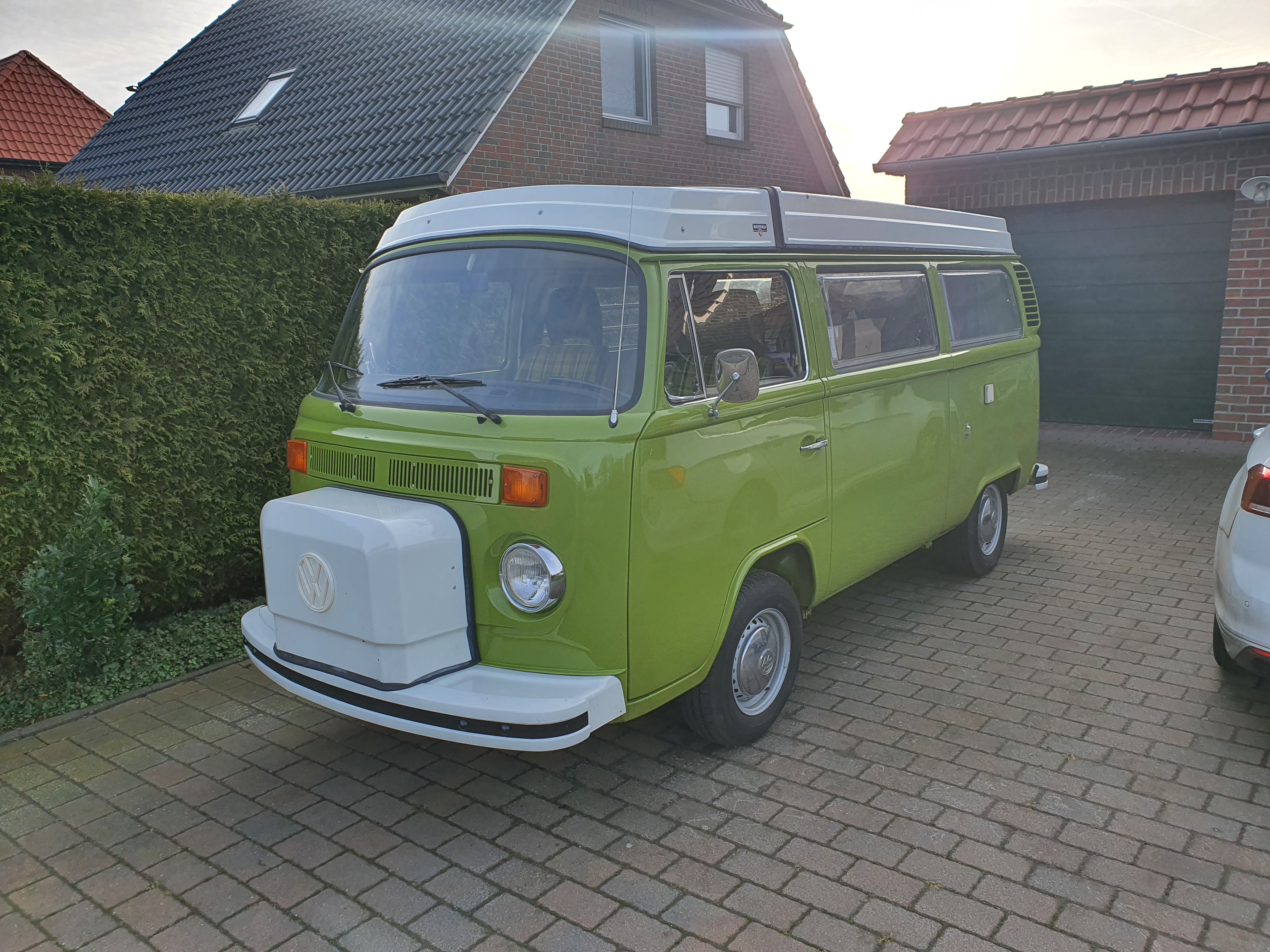 da ich mir nun endlich einen lang gehegten Wunsch mit einem VW T2b Westfalia "Berlin" aus 1977 erfüllt habe, habe ich mich hier bei Gleichgesinnten angemeldet und möchte mich kurz vorstellen. Ich heiße Friso, bin mittlerweile 48 Jahre alt und wohne an der schönen Nordseeküste zwischen Wilhelmshaven und Bremerhaven. Vor 30 Jahren hatte ich mal einen T2b. Allerdings war das ein abgelegter Montagewagen in entsprechendem Zustand. Allerdings hat mich das Auto so begeistert, daß mich über all die Jahre die Idee eines Westfalia-T2b nicht losgelassen hat. In den letzten 30 Jahren habe ich mich mit anderen alten Autos beschäftigt. Ich habe viele Jahre mit großer Begeisterung einen Audi 100 GL 5E aus 1980 gefahren. Danach kamen zwei Mercedes W123. Nun bin ich sozusagen zu meinen automobilen Anfängen mit dem Bulli zurückgekehrt. Der Wagen ist restauriert und nach meinem Dafürhalten in sehr gutem Zustand. Es gibt natürlich immer ein paar Kleinigkeiten zu erledigen. Der Kühlschrank und die Heizung laufen nicht mehr auf Gas und die hintere Innenbeleuchtung ist defekt aber das sind alles Dinge, die in Ruhe erledigt werden können.