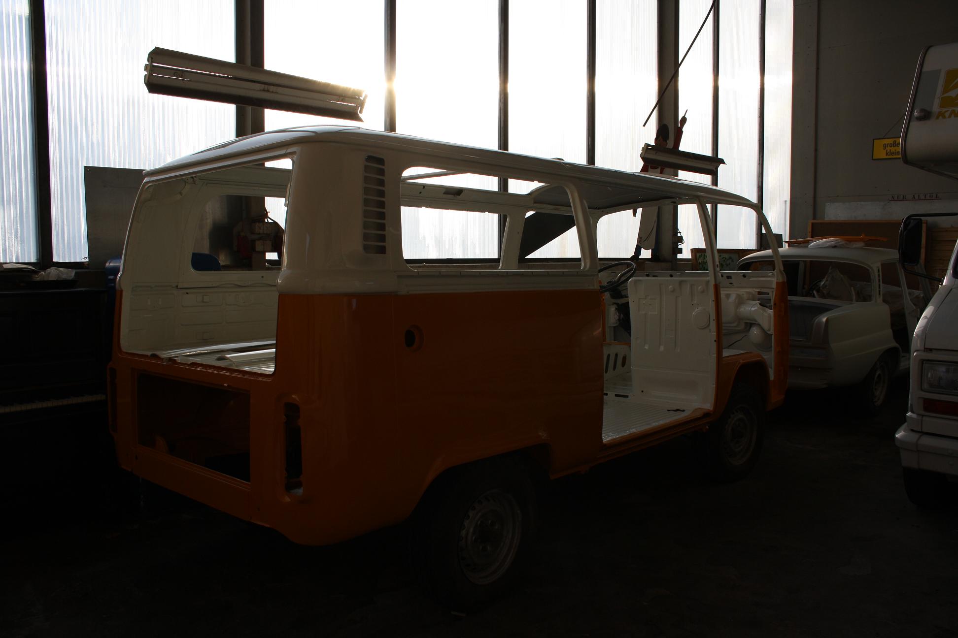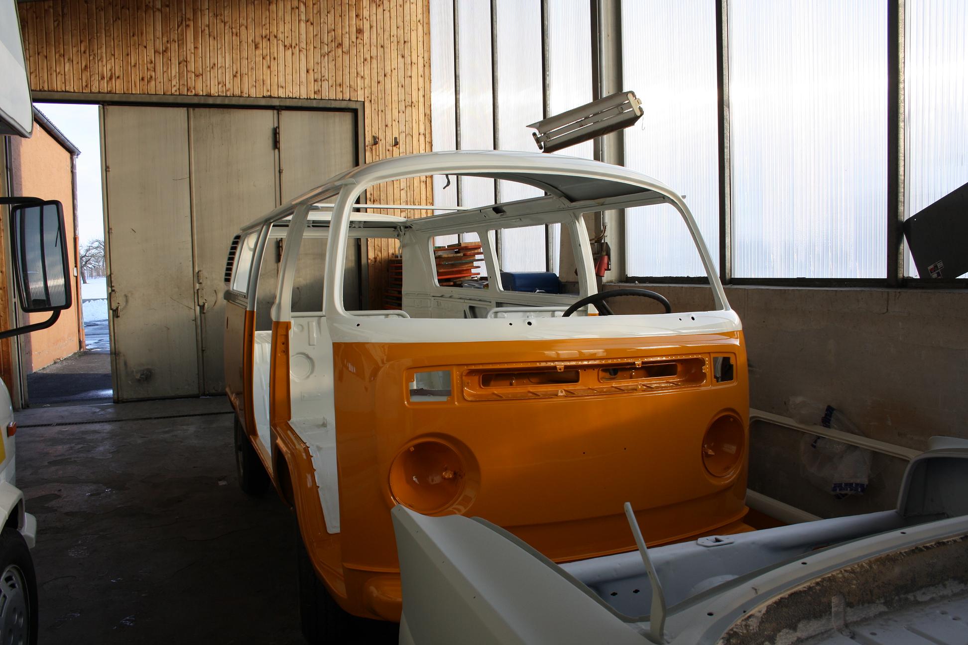 Da begann dann auch die lange und aufregende Reise einer Vollrestauration. Bin mittlerweile seit knapp 1 1/2 Jahren dabei den Bus wieder flott zu kriegen. Nach dem Sandstrahlen, Stunden von Blechanfertigungen und Schweißen ist er nun neu lackiert und beinah wieder vollständig zusammengebaut.