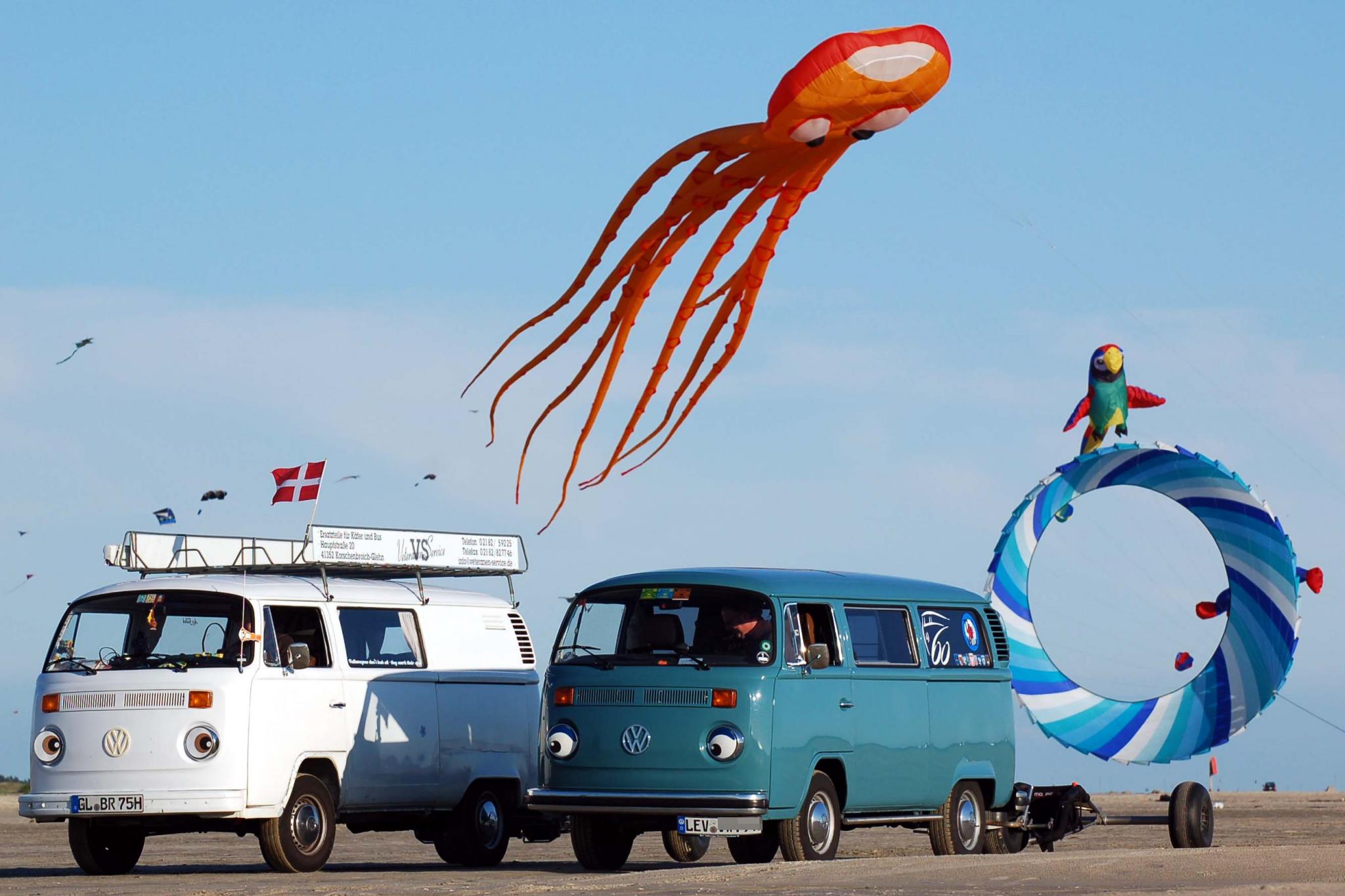 Sind wieder zurück von der Insel der Drachenflieger. Es war eine tolle Woche, die Bullis haben mal den dänischen Strand gesehen und uns mit all unserem Kram treu nach Fanö und zurück transportiert. Das kann ich nur jedem empfehlen