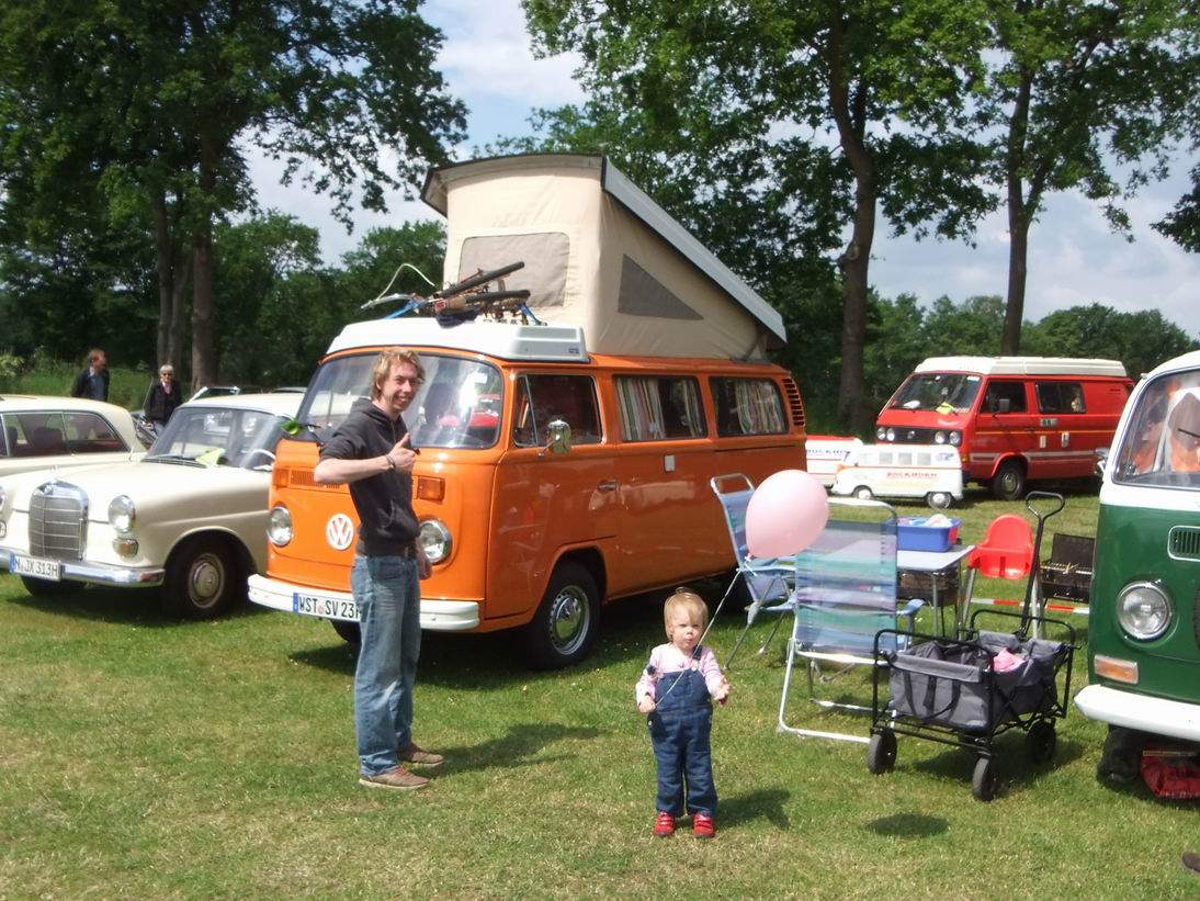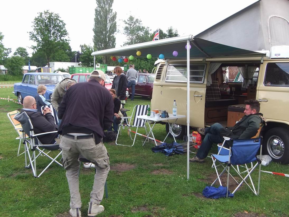 Auch am nächsten Morgen keine nennenswerte Wetterbesserung. Bedeckter Himmel, kalt und windig. Wir freuten uns zwar alle, in Bockhorn zu sein - aber das Gemeinsame mußte diesmal temperaturbedingt etwas kurz kommen. Bei dem Bummel über den Markt zeigte sich dann wieder der Charme dieses Treffens für mich: man trifft alte und neue Bekannte, mit denen man am Bulli schöne Zeiten verbringt. Zur "Abwechslung" dann mal etwas über den Markt schlendern und mal eben das Klapprad mit der 2-Gang-Schaltung erworben sowie erfreut festgestellt, daß die Oldtimer-Markt ihren besten Mann geschickt hat. Auf dem Markt schon immer wieder reger Austausch mit den sich immer wieder über den Weg laufenden Platznachbarn, wo man was gesehen hat und wo man unbedingt nochmal hin muß. "Ja - im Zelt steht der Dani*8, guckt Euch den mal an!"