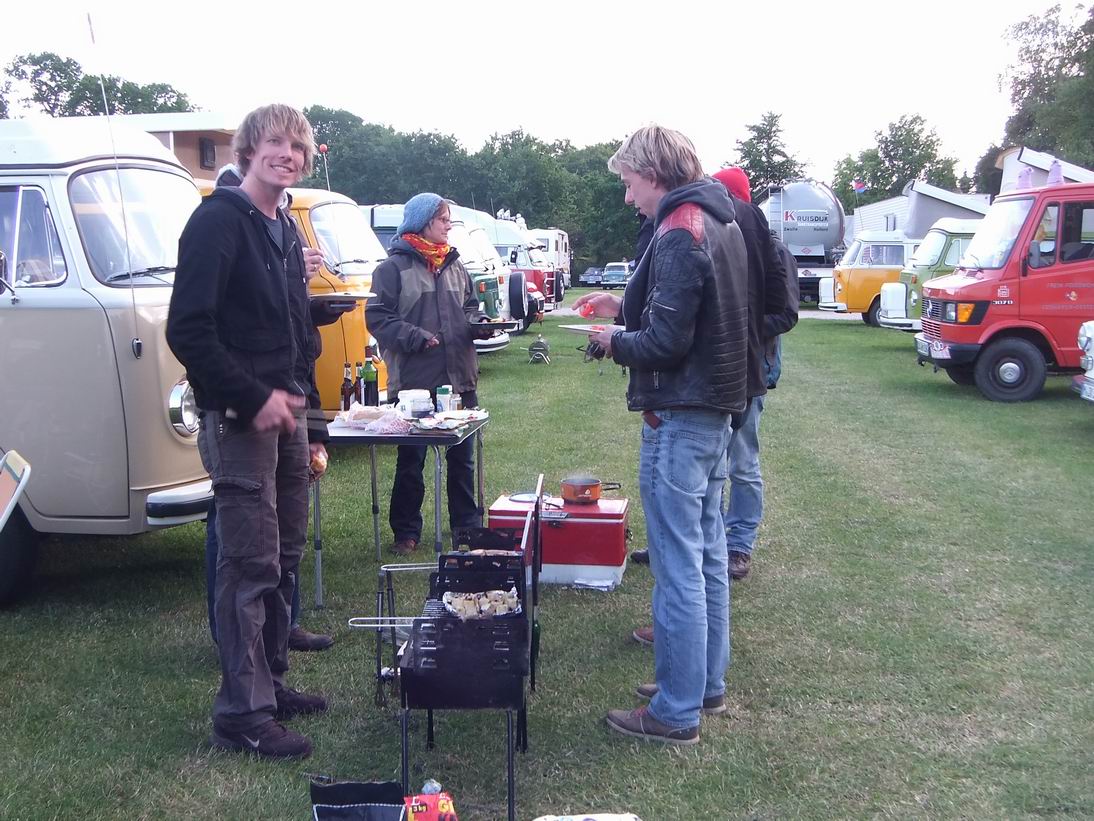 Das erste, was anders war: man, war das schon am Freitag gut besucht! Als wir gegen 16:00 Uhr da aufschlugen standen schon überall Autos. Fronleichnam am Donnerstag - da machten sich Einige wohl ein langes Wochenende in Küstennähe. Obwohl schon geradezu üblich freue ich mich ja wie Bolle, bekannte Gesichter wieder zu sehen. Schnell war also das Rund derer geschlossen, die nicht im beschaulichen, ruhigen Campingterrain parkten. Mal abgesehen davon, daß der oben meckernde Jörg im Gegensatz zu PeterE. überhaupt nicht im Campingterrain war: lautstarke Lederkutten-Fan-Gruppe auf der einen und 1,5 Stunden lang laufender Stromgenerator, um den Kompressorkühlschrank zu betreiben, auf der anderen Seite läßt bei mir den Entschluß aufkommen, doch lieber weiter auf dem Feld "A" zu bleiben