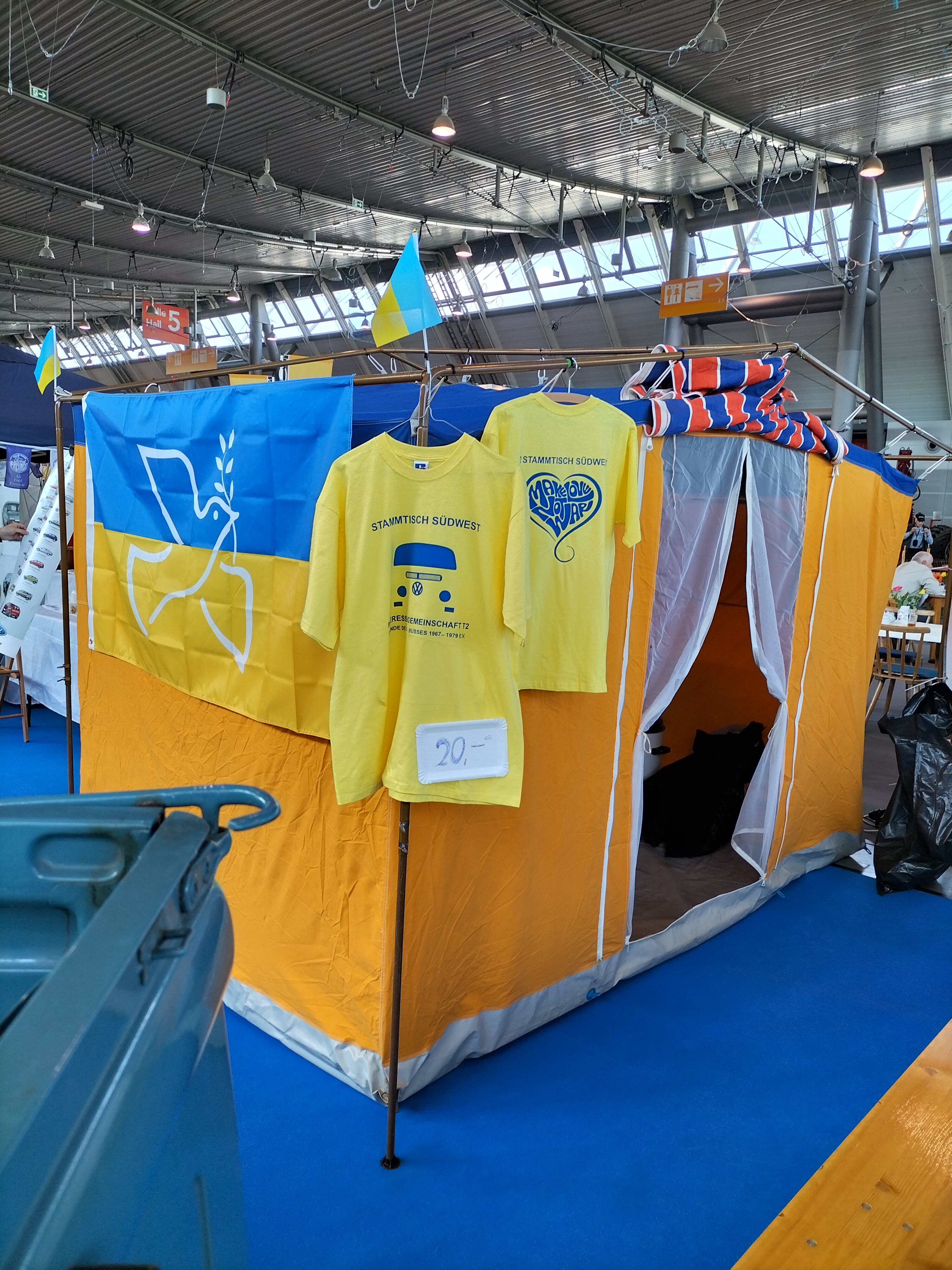 Wir haben auf der diesjährigen Retro Classics versucht Farbe zu bekennen, ich glaube das ist uns gelungen. Der Spenden Bus für die Ukraine wurde auch gesehen, und der ein oder andere Euro wanderte hinein.