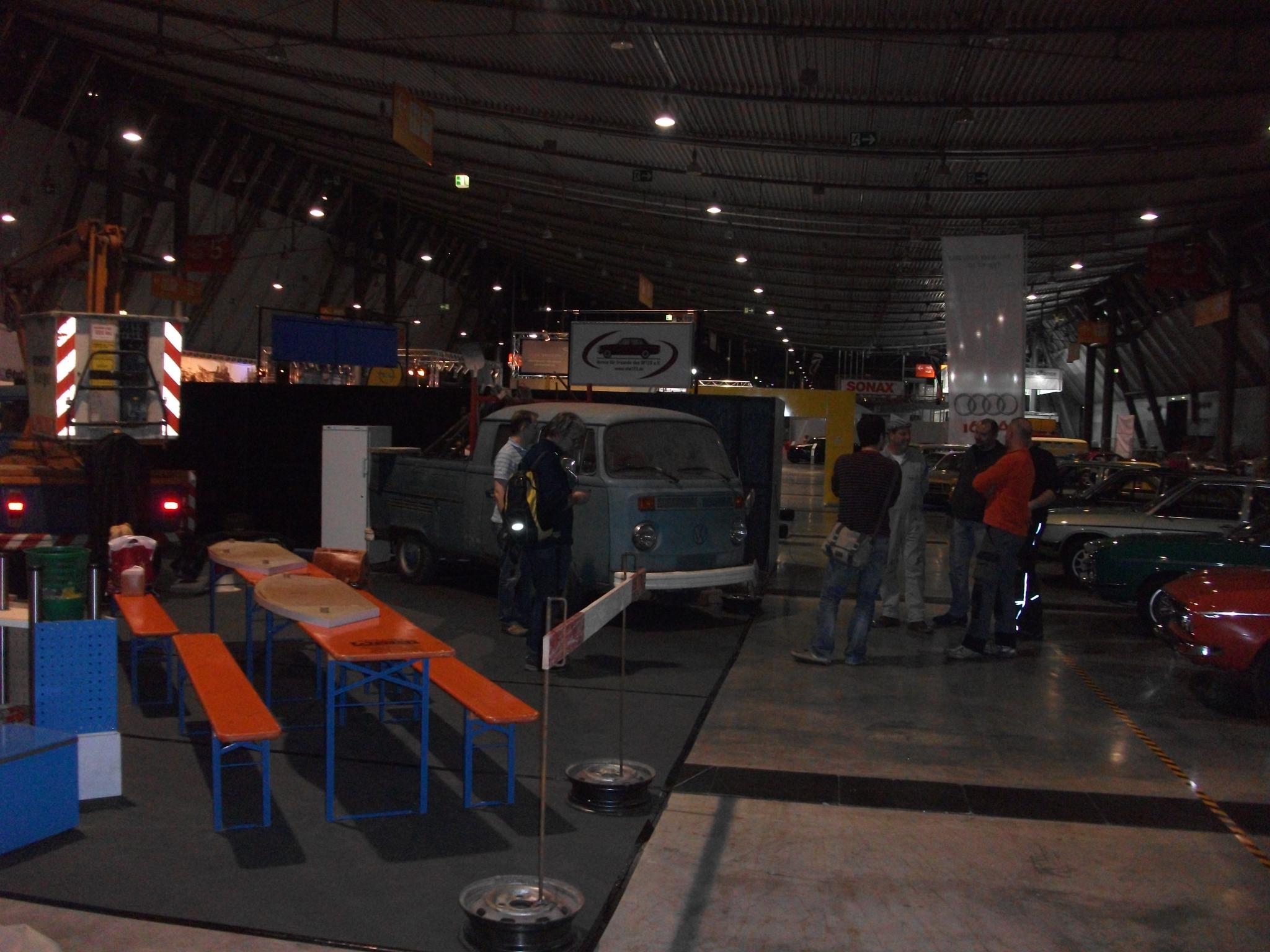 So hier nun die ersten Bilder vom Aufbau des diesjährigen RETRO-CLASSIC -IG-T2- Messestandes. Ich glaube wirklich gut gelungen die Umsetzung des Mottos "T2-Baustellenfahrzeuge". Gute Idee Thomas und Andy
