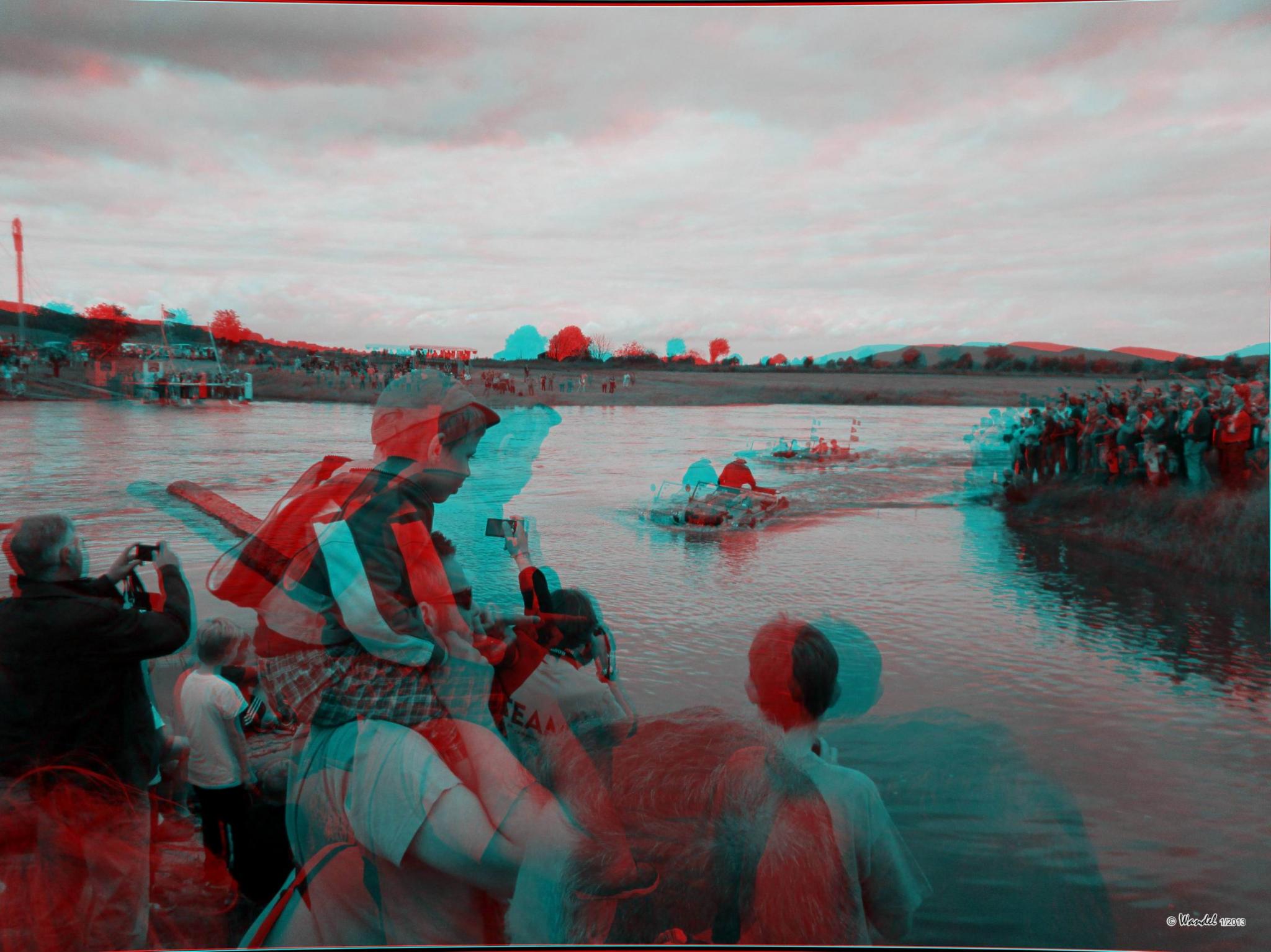 Die Schwimmwagen (guckt Euch an, wie tief die im Wasser liegen - da reicht eine Welle und die nippeln ab!) werden begeistert empfangen: