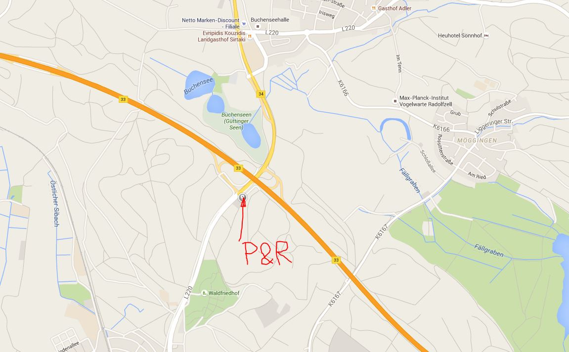 Park and Ride Parkplatz an der Autobahnabfahrt Radolfzell.