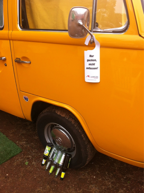 Kritisch sah ich etwa 15 T3 und ein paar andere Wassergekühlte. Aber irgendwie wollte keine schlechte Stimmung aufkommen. Bemerkenswert: immer wieder zeigte sich irgendwo der Veranstalter und erkundigte sich danach, ob alles in Ordnung ist und quatschte auch. Echt toll, Christopher. Du sahst dann zu später Stunde zwar echt etwas mitgenommen aus. Aber Deine gute Stimmung und die Freude, daß das wieder in Cuxhaven steigen konnte, steckten an. Die T3' ler bedienten überhaupt nicht mein in den letzten Jahren gewonnenes Bild. Ruhig (!), friedlich, kommunikativ und lustig, das passte! Fürs nächste Mal nur der Wunsch, den Anhängern der gepimpten Erdbeerkörbchen doch mehr zu vermitteln, ruhig zu sein. Deren Anfall, den gesamten Platz mit der absoluten B-Ware von 50ger-Jahre Musik zu beschallen, nervte. Aber selbst die wollten irgendwann grillen.