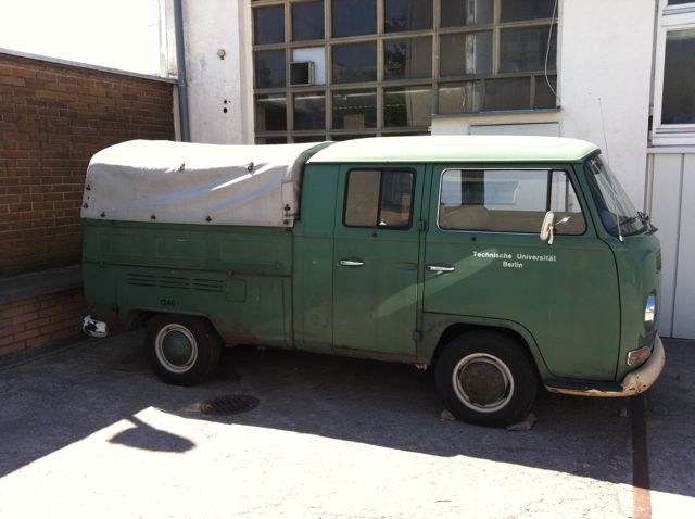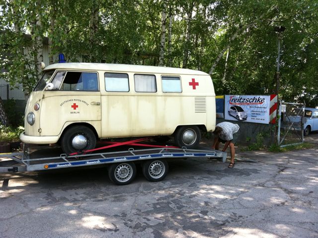 Für die, die nicht dabei waren: eine berliner hausverwaltung räumt ihre garagen auf, und fand diesen bus. sie baten ihn einer werkstatt an, die dann wiederum mich - diesen verrückten bussammler - weiterempfohlen hat. der wohnungsverwalter hat mir dann blindlings die schlüssel per post geschickt. so was gibts also noch!